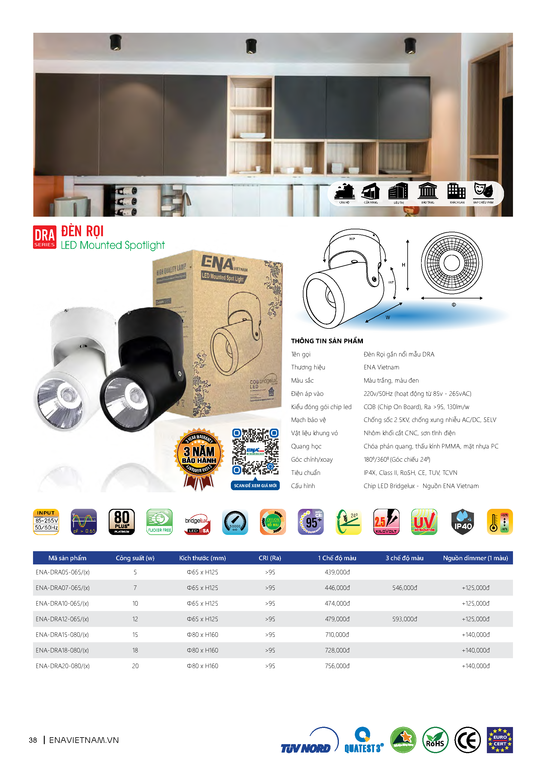 Đèn rọi ngồi chiếu điểm ENA Vietnam bảo hành 3 năm Công suất: 5W, 7W, 10W, 12W +Kích thước: Ø65xH125mm Công suất:15W, 18W, 20W +Kích thước: Ø80xH160mm Ánh sáng: Trắng/ Trung tính/ Vàng/ 3 CHẾ