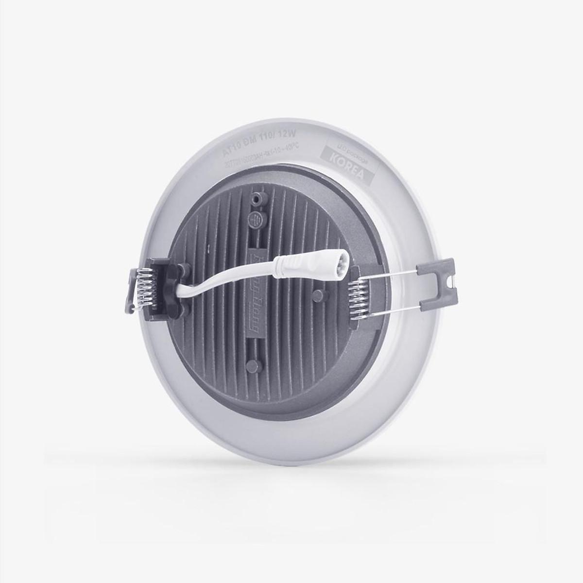 Đèn LED Âm trần Downlight 110/12W Model: AT04 110/12W Công suất: 12W Điện áp: 220V/50Hz Quang thông: 930lm/910lm Nhiệt độ màu: 6500K/3000K Kích thước (ØxH): (138x50)mm ĐK lỗ khoét trần: 110mm - Sử dụng Chip