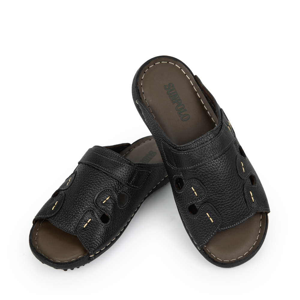 ✨Dép nam quai ngang da bò cao cấp đế cao su SUNPOLO DQN018