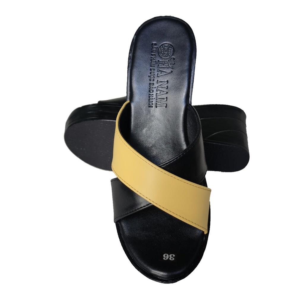 Dép Nữ Quai Ngang Đế Xuồng HÀ NAM Da Bò Thật Cao Cấp 7cm DNU2152 - Giày Dép Được Gia Công Tại Xưởng Shop - Hoàn Trả Tiền 100% Hoặc 1 Đổi 1 Nếu Shop