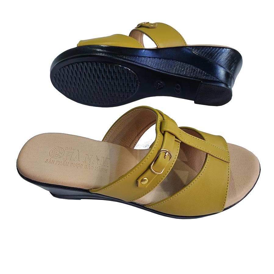 Dép Nữ Quai Ngang Đế Xuồng HÀ NAM Da Bò Thật Cao Cấp 7cm DNU2152 - Giày Dép Được Gia Công Tại Xưởng Shop - Hoàn Trả Tiền 100% Hoặc 1 Đổi 1 Nếu Shop