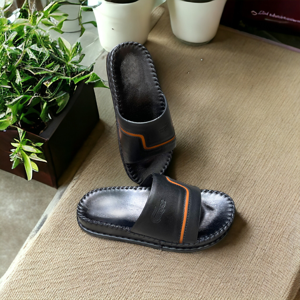 Dép Da Nam - Lịch Lãm & Thoải Mái Mỗi Ngày - Chất liệu cao cấp: Sử dụng da tổng hợp chất lượng, mềm mại, bền bỉ theo thời gian, mang lại cảm giác êm ái và thoáng khí cho bàn chân. - Thiết kế sang trọng: Tông màu đen lịch lãm, kết hợp với đường chỉ may tinh tế và logo kim loại nổi bật – tôn lên vẻ nam tính, trưởng thành. - Đế chống trượt: Đế EVA siêu nhẹ, độ đàn hồi tốt, kết hợp vân đế tăng độ ma sát – an toàn khi di chuyển trên nhiều bề mặt. - Form ôm chân: Thiết kế bản quai ngang rộng, ôm gọn bàn chân nhưng không gây bí bách, dễ xỏ vào – thích hợp cho người trung niên và người lớn tuổi. - Ứng dụng đa năng: Phù hợp sử dụng trong nhà, đi dạo phố, đến văn phòng hoặc các dịp gặp gỡ thân mật. Lựa chọn tuyệt vời cho quý ông yêu thích sự thoải mái, đơn giản nhưng vẫn giữ được nét tinh tế trong từng bước chân.