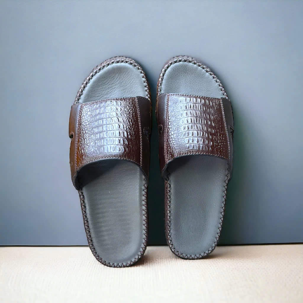 DÉP NAM BA QUAI DA BÒ,QUAI CÓ GẮN KHUY ĐẸP MẮT Dép quai ngang cá sấu da bò 100% Chất liệu: Da bò thật thật 100% da bò tự nhiên Đế cao su tốt đi