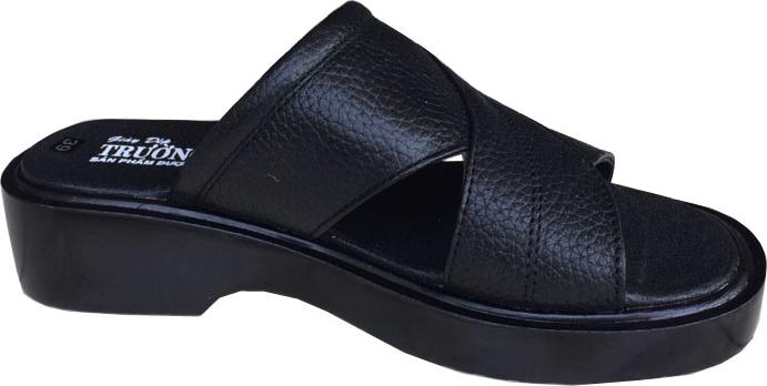 ✨Dép quai ngang nam Trường Hải da bò cao cấp mềm mại không bong tróc màu đen đế PU siêu nhẹ cao 5cm QN0744