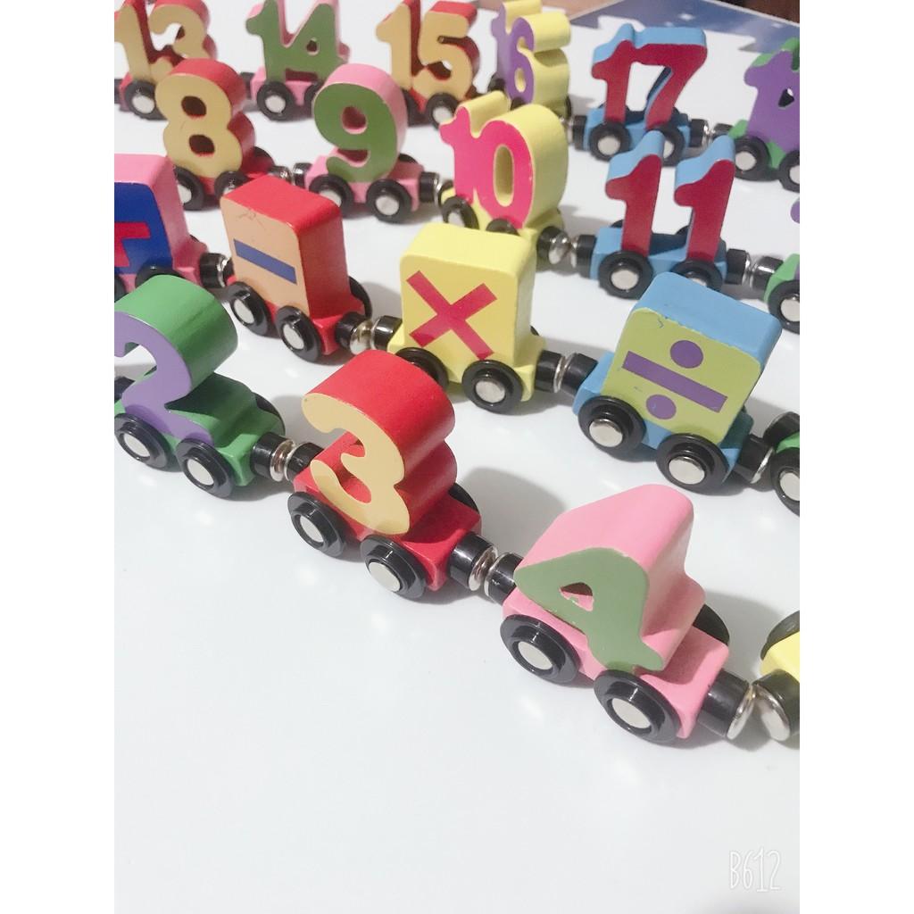 - Bộ số gồm 27 toa: 1 toa đầu tàu, các toa số 0-20 kèm các toa phép tính +-x/= Đoàn Tàu Nam Châm Chữ và Số Hanana ️ 1 bộ dài vô cùng (1,72m), chơi siêu vui ️ Bé vừa chơi,vừa làm quen với chữ cái, chữ số, tập ghép các từ Tiếng Anh hay các phép tính cơ bản ️ gỗ thịt nguyên khối, nam châm chắc chắn, sơn gốc nước cao cấp ️ Làm quà tặng cực sang Sản phẩm này là tài sản cá nhân được bán bởi Nhà Bán Hàng Cá Nhân và không thuộc đối tượng phải chịu thuế GTGT. Do đó hoá đơn VAT không được cung cấp trong trường hợp này.