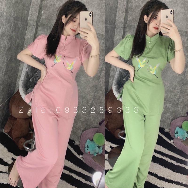 Quần áo phật tử, đồ lam đi chùa mẫu lụa thêu chim Hạt A52A, shop Hồng Phúc An
