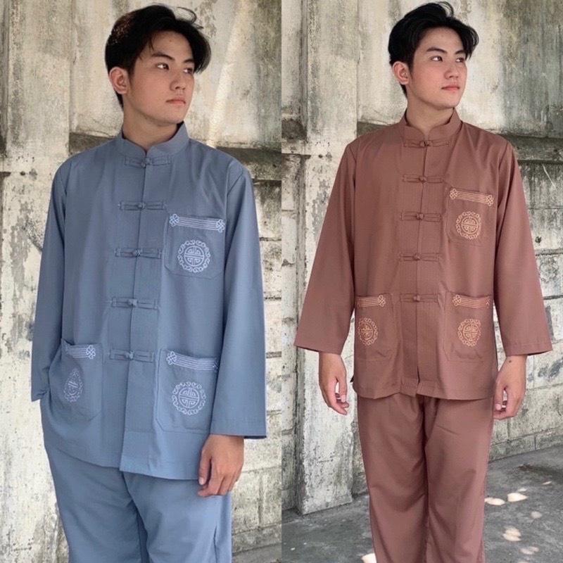 Quần áo phật tử, đồ lam đi chùa mẫu nam thêu túi vải Linen