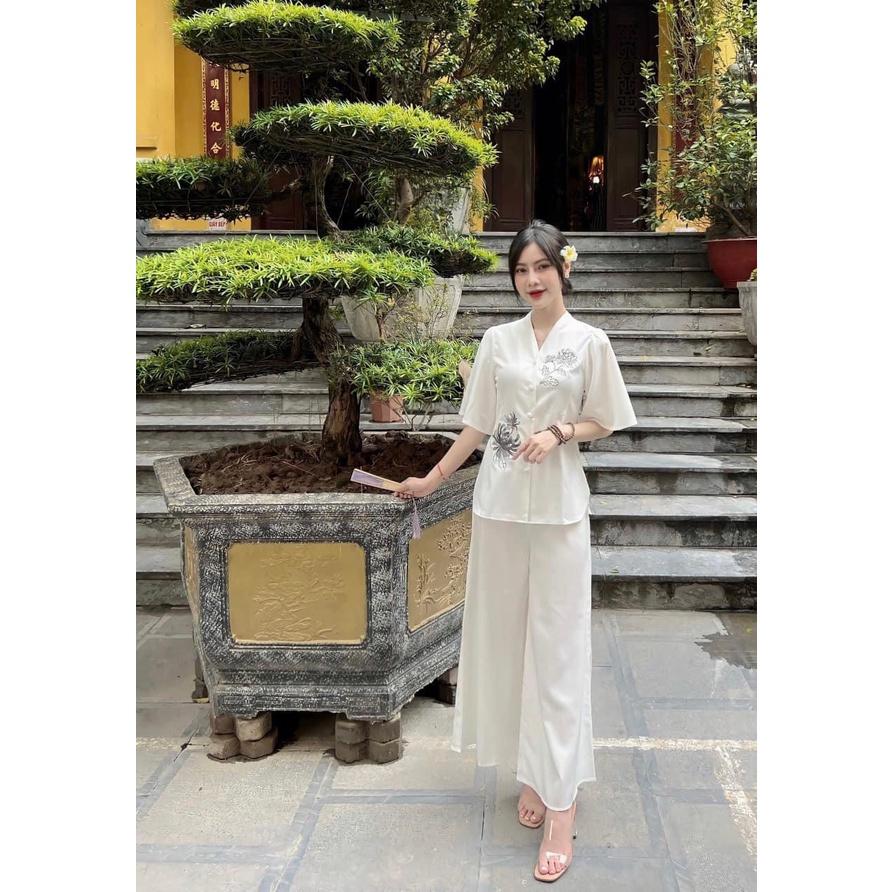 Quần áo phật tử, đồ lam đi chùa mẫu thêu hoa cúc #fashion #quanaophattu