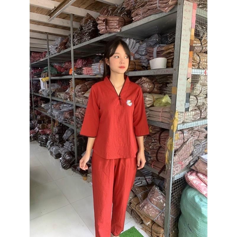 (Ảnh + Video shop tự quay) Bộ đồ lam đi chùa cổ tàu thêu sen gồm cả áo và quần, áo được thêu sen, quần có túi . Size: 24/26/28/30/32/34/36 ( tham khảo bảng chọn
