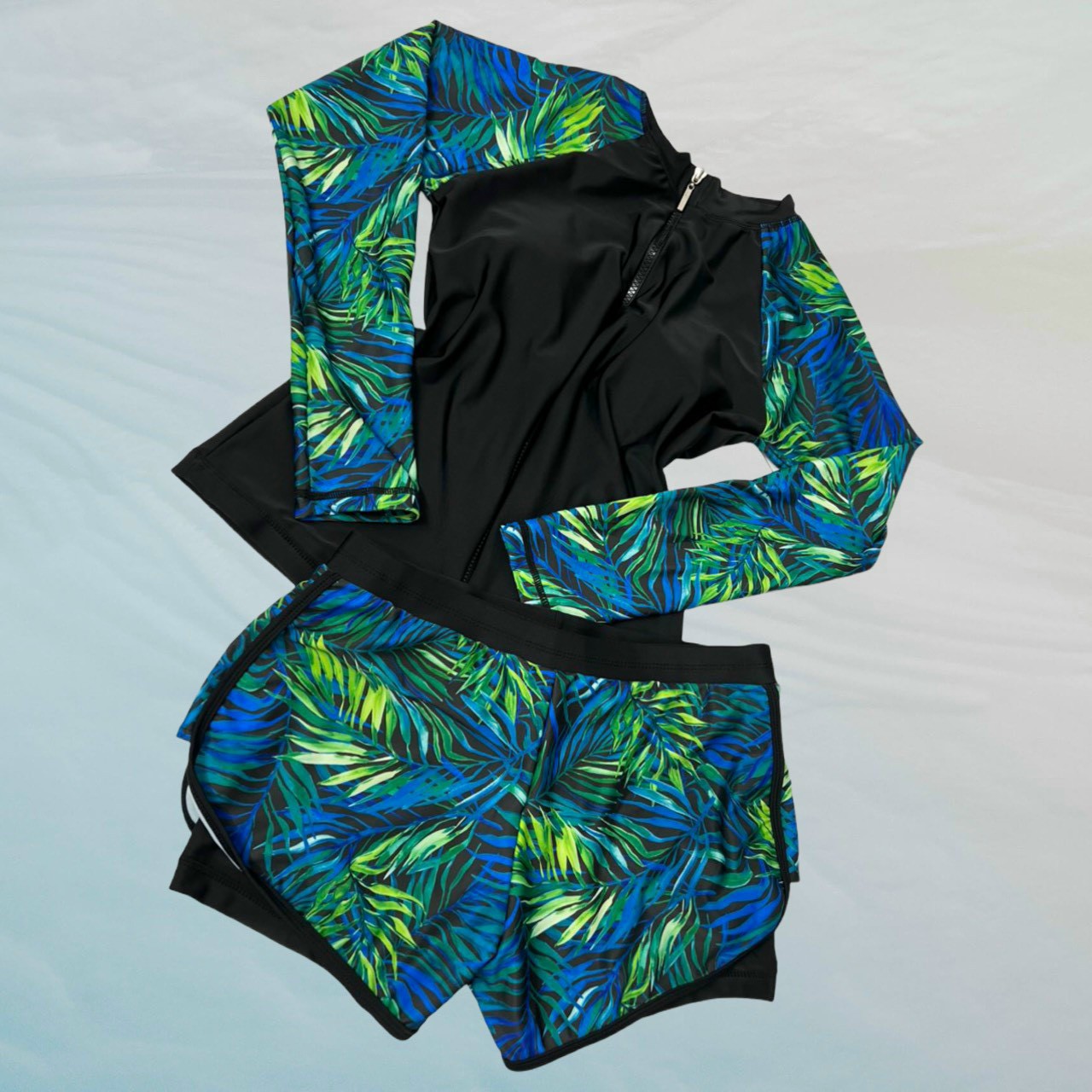 - Mẫu đồ bơi đôi cực xinh cho các couple đi biển cùng nhau ạ, dáng dài tay chống nắng thể thao tiện dụng. - Set 3 chi tiết bao gồm: Áo bơi dài tay