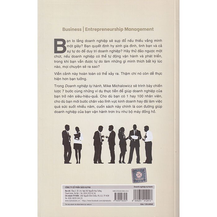 "Doanh nghiệp tự hành dạy bạn cách làm chủ doanh nghiệp chứ không phải quản lý doanh nghiệp. Nó sẽ giúp bạn có thêm nhiều thời gian hơn, dòng tiền dồi dào hơn và tự do đắm chìm trong những ý tưởng. Tôi đánh giá cao chiến lược này." _Donald Miller, tác giả Xây dựng câu chuyện thương hiệu