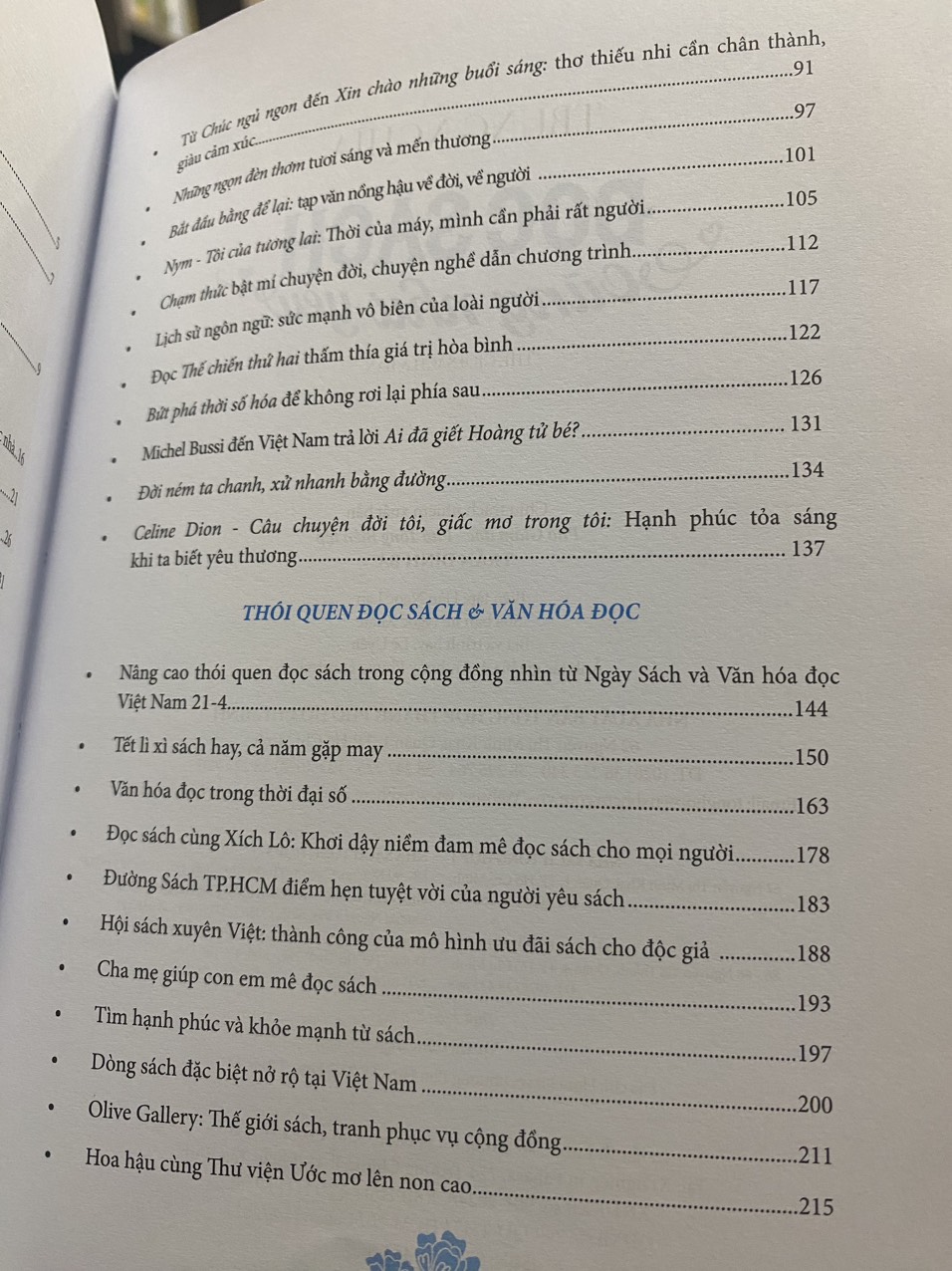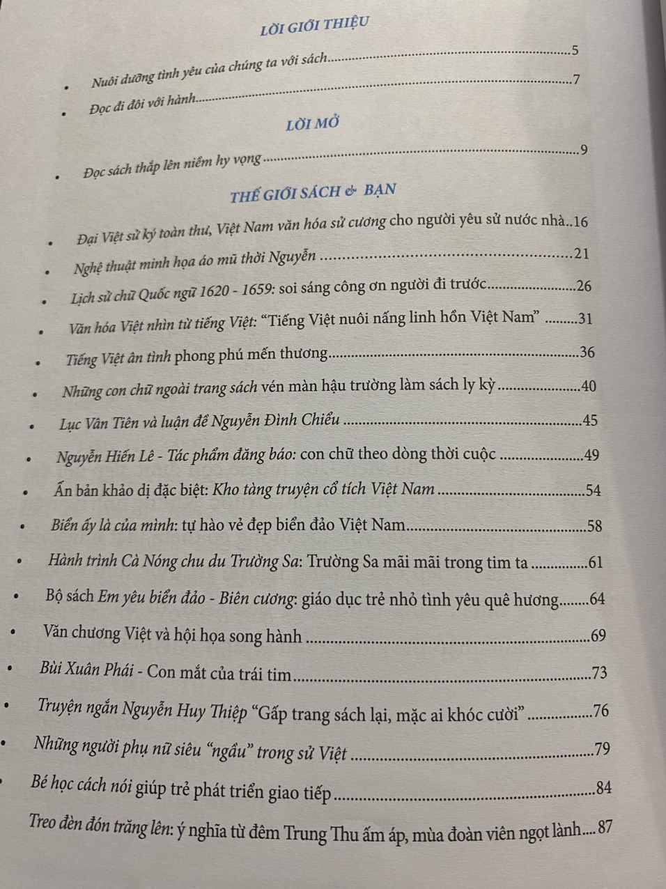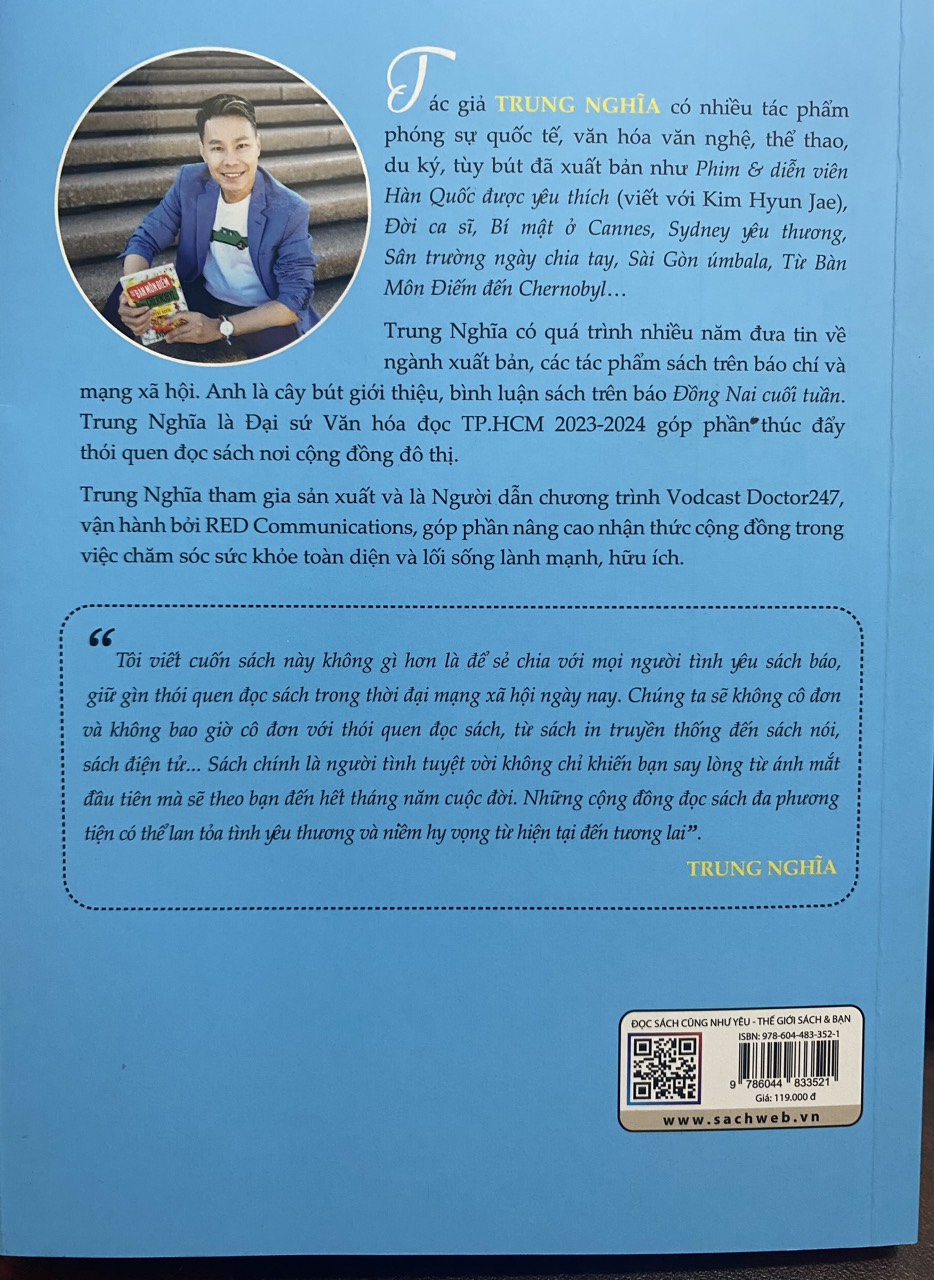 Cuốn sách cũng là sự sẻ chia đến mọi độc giả yêu sách, thích đọc sách trong thời đại số ngày hôm nay theo tinh thần dung nạp kiến thức rộng mở, đa phương tiện. Tác giả Trung Nghĩa viết trong sách: “Có ý kiến cho rằng mạng xã hội và internet phát triển đã khiến thói quen đọc của con người giảm sút. Nhưng theo góc nhìn cá nhân của mình, tôi nghĩ rằng mạng xã hội và internet phát triển khiến thói quen đọc của người Việt thay đổi thì đúng hơn. Thay đổi đó là gì? Là chiều hướng mọi người có thể “đọc” thông tin và tiếp nhận tri-kiến thức một cách phong phú và đa dạng bên cạnh sách giấy. Sự phát triển của công nghệ nghe nhìn hiện đại ngày nay giúp chúng ta có thể tiếp nhận thông tin, tri thức qua nhiều kênh khác nhau bên cạnh việc đọc sách truyền thống. Người đọc sách hôm nay có thể hiểu là họ “đọc” sách nói, sách điện tử, họ đọc thông tin phù hợp từ Internet và các nền tảng mạng xã hội khác nhau qua máy tính, điện thoại di động. Tôi nghĩ trong thời đại chuyển đổi số, thói quen đọc của người Việt đang và sẽ tăng lên rất nhiều nếu như ta không nghĩ bó hẹp theo hướng đọc truyền thống qua sách in”.