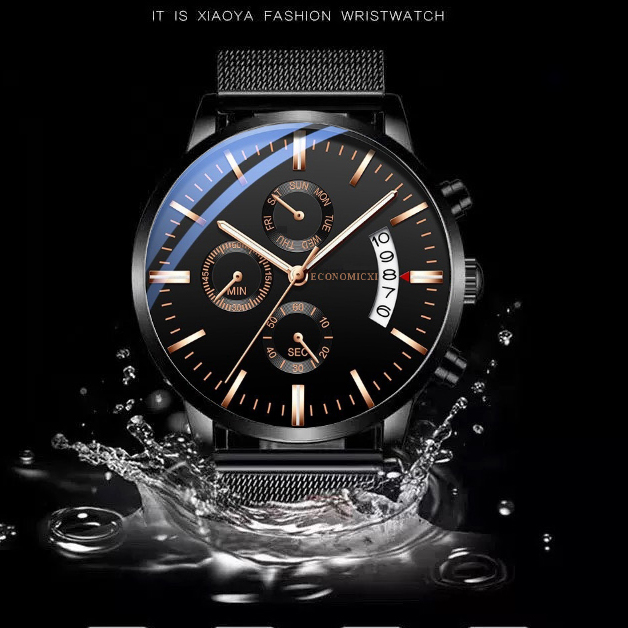 ✨Đồng hồ nam ECONOMICXI phong cách nam tính có lịch ngày dây thép mành đen cao cấp