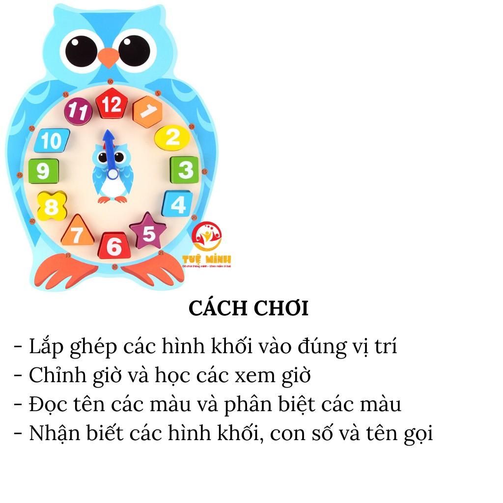 ✨Đồng Hồ Phân Biệt Màu Sắc Hình Khối Con Cú Con Ếch Tuệ Minh Giúp Bé Học Xem Giờ