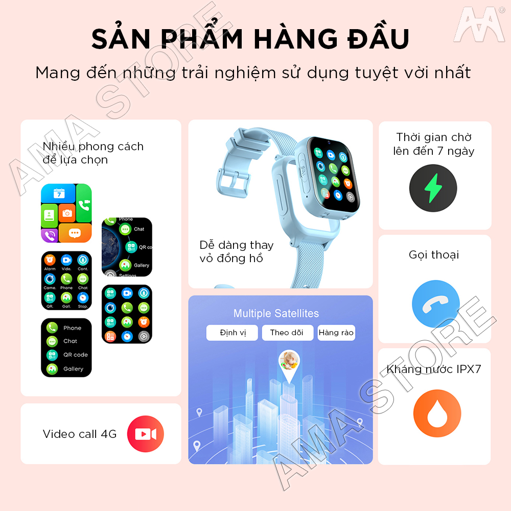 ✨Đồng hồ Thông Minh Định vị Trẻ em SmartWatch AMA K26 Lắp sim Gọi Video có thể Tháo rời Tiện lợi Hàng nhập khẩu