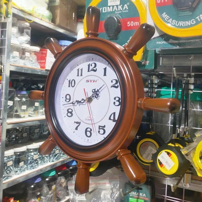Đồng hồ treo tường bánh lái tàu SYH S252 - Chất liệu Nhựa giả gỗ - Kích Thước 43cm