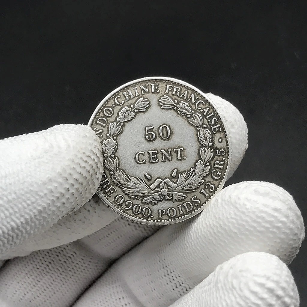 ✨Đồng Xu Hoa Xòe Đánh Gió Đông Dương Hình Bà Đầm Cũ Bạc Ta 50 Cent BẠC HIỂU MINH DDD002C