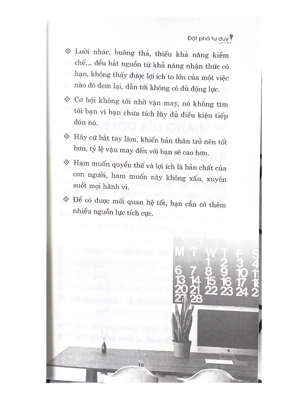 Tuy hiểu chính mình là một điều rất khó khăn, bởi có đầy rẫy những ngôn luận mê hoặc lòng người, nhưng hiểu được chính mình sẽ cho quả ngọt. Trong ĐỘT PHÁ TƯ DUY, Thái Thúc đã vạch ra một con đường để đi tìm chính mình. Cuốn sách toát lên trí tuệ và tư tưởng đúng đắn, rất đáng để đọc.