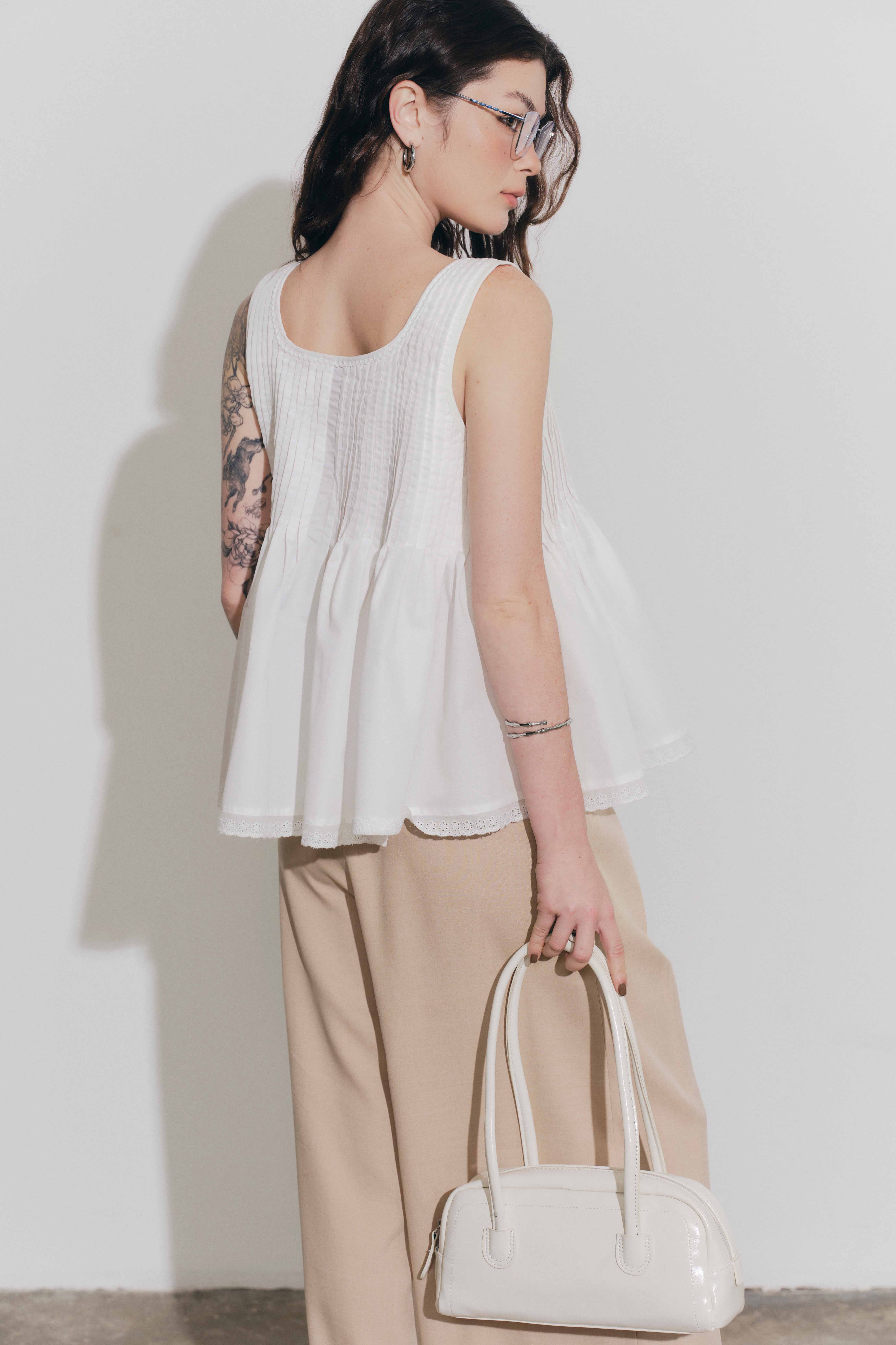 ✨DOTTIE - Áo kiểu chiết ly - Trắng - T1130