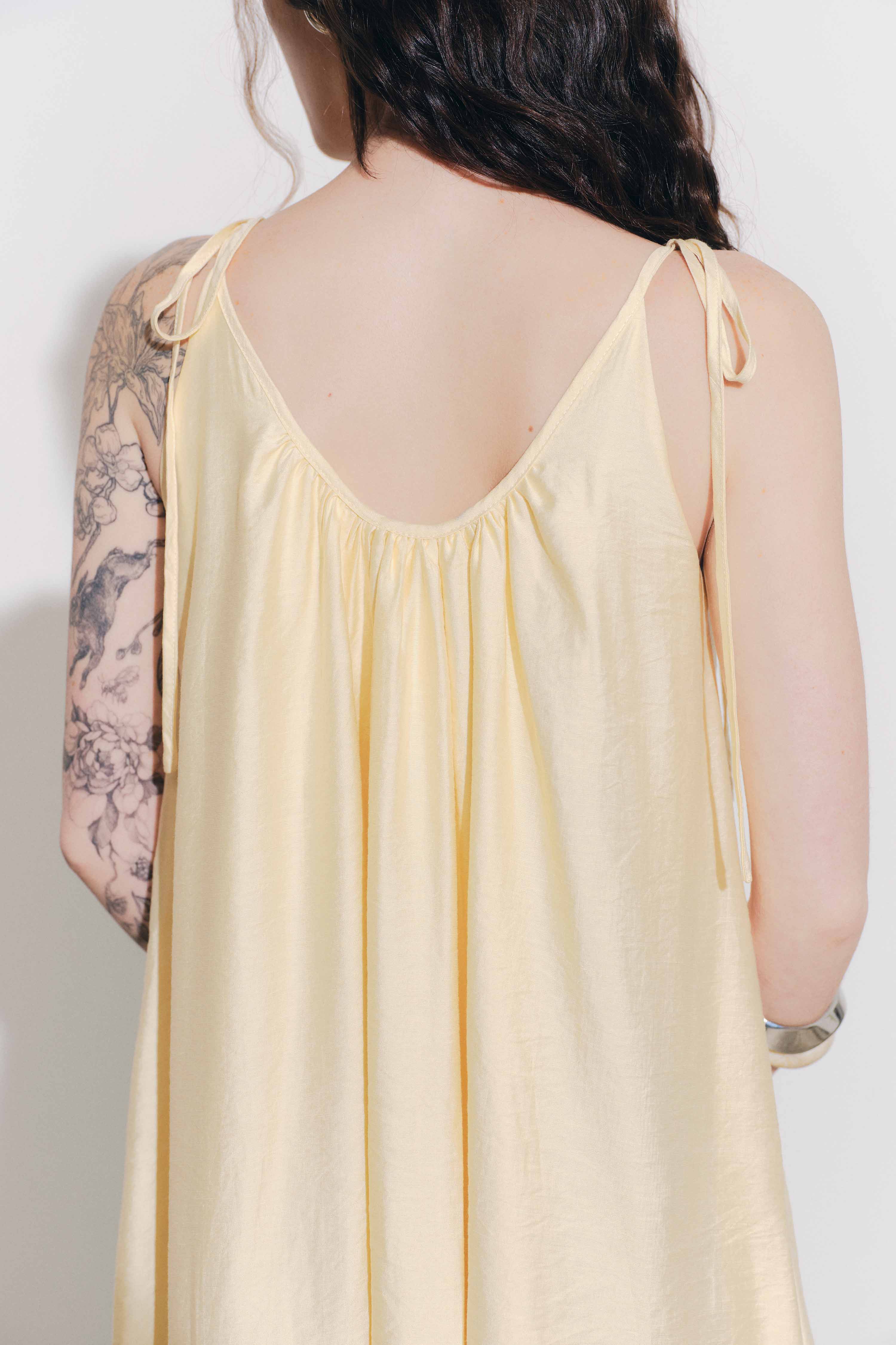 ღ THÔNG TIN SẢN PHẨM: Tên sản phẩm: Đầm vàng cổ yếm Chất liệu: Chất gân ý· Chi tiết sản phẩm: không lót, không túi Thông số size: S, M, L,