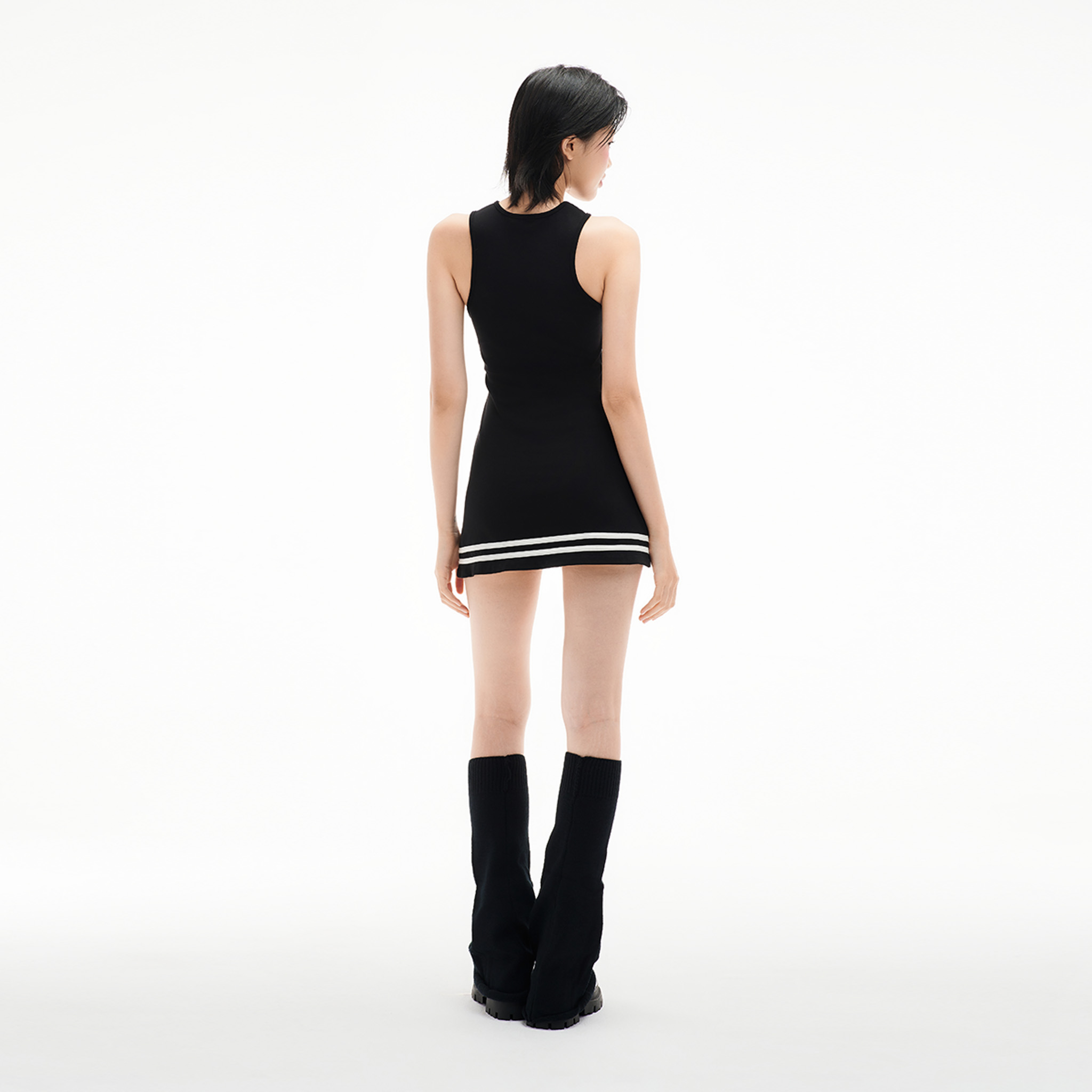 ღ THÔNG TIN SẢN PHẨM: Tên sản phẩm: Đầm trắng cổ tròn phối đen Màu sắc: trắng phối đen Chất liệu: chất bố Chi tiết sản phẩm: không lót, không túi.