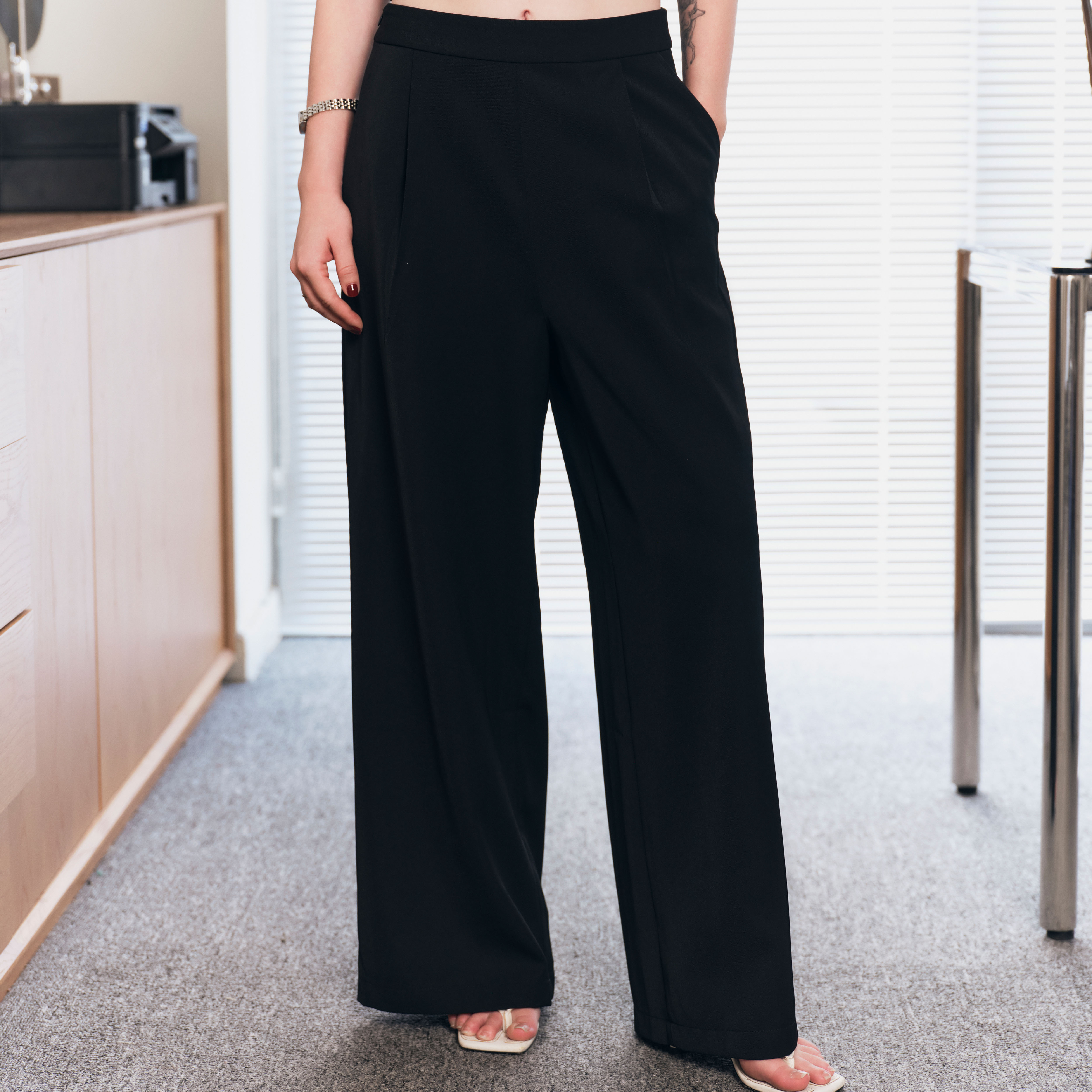 - Chất liệu: Cotton - Thiết kế: Quần tây ống rộng với lưng cao, đường may tỉ mỉ, ít nhăn. Thiết kế thanh lịch, tôn dáng và tạo cảm giác thoải mái khi mặc.