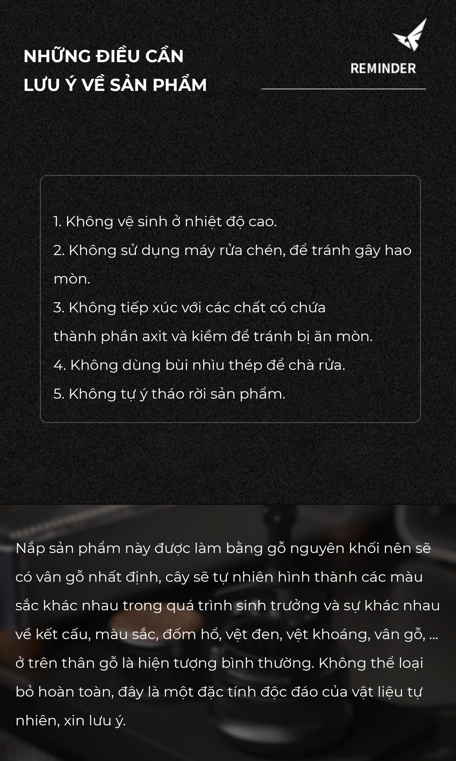 • Chất liệu: Hợp kim nhôm, gỗ, inox 304