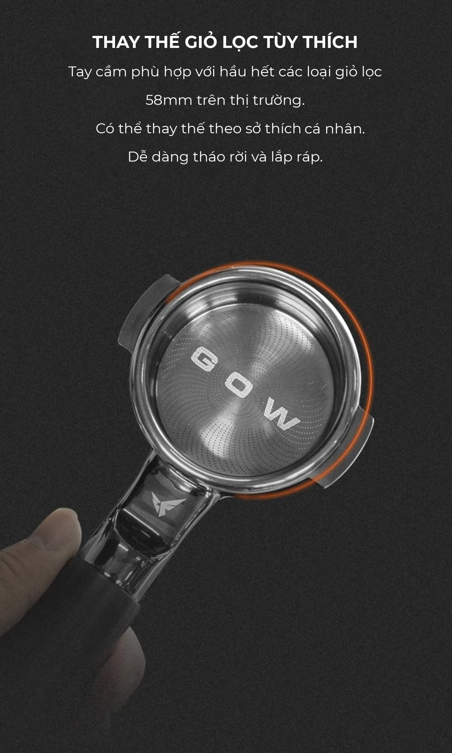 • Tay cầm phù hợp với hầu hết các loại giỏ lọc 58mm trên thị trường. Dễ dàng tháo rời và thay thế giỏ lọc theo sở thích cá nhân.