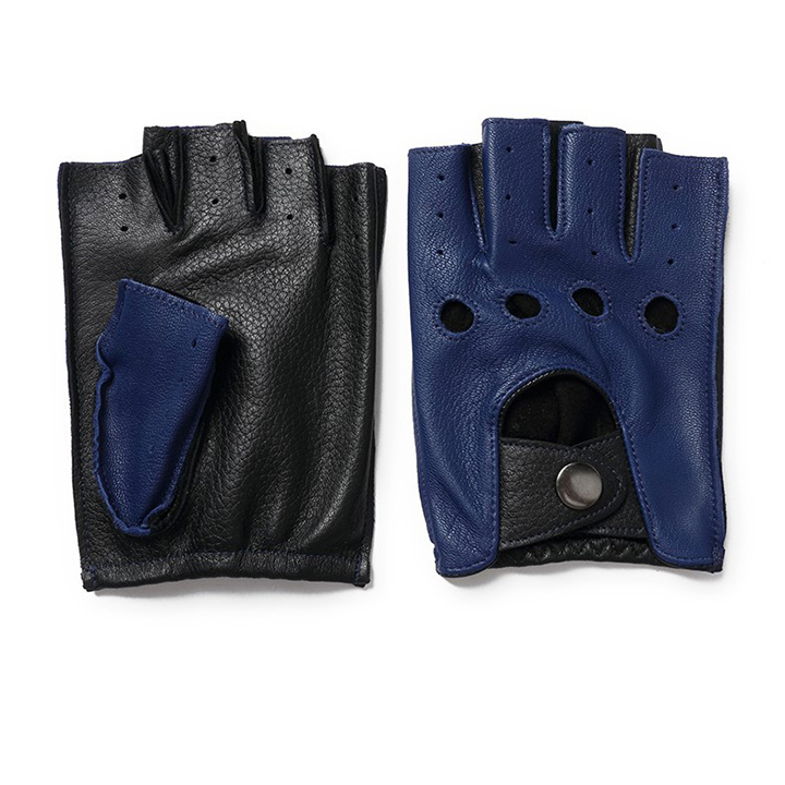 ✨Găng tay nam hở ngón da cừu nguyên tấm BHY8853 màu Xanh dương, Bao da lái xe