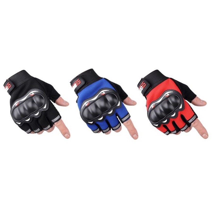 Găng tay thể thao thiết kế hở ngón tăng cảm giác lái, sử dụng được với điện thoại. Có gù nhựa cứng bảo vệ khỏi va chạm. Nút cao su trong lòng bàn tay tăng