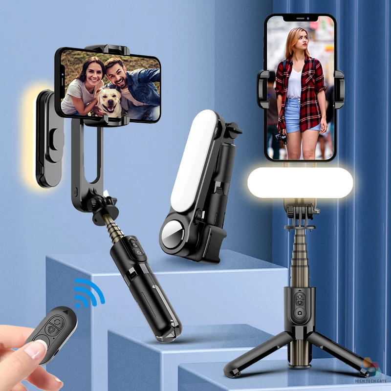 Gậy tự sướng Selfie Mini Gymbal điện thoại L09 chống rung giá rẻ dùng quay Vlog - Tiktok Có Đèn Led