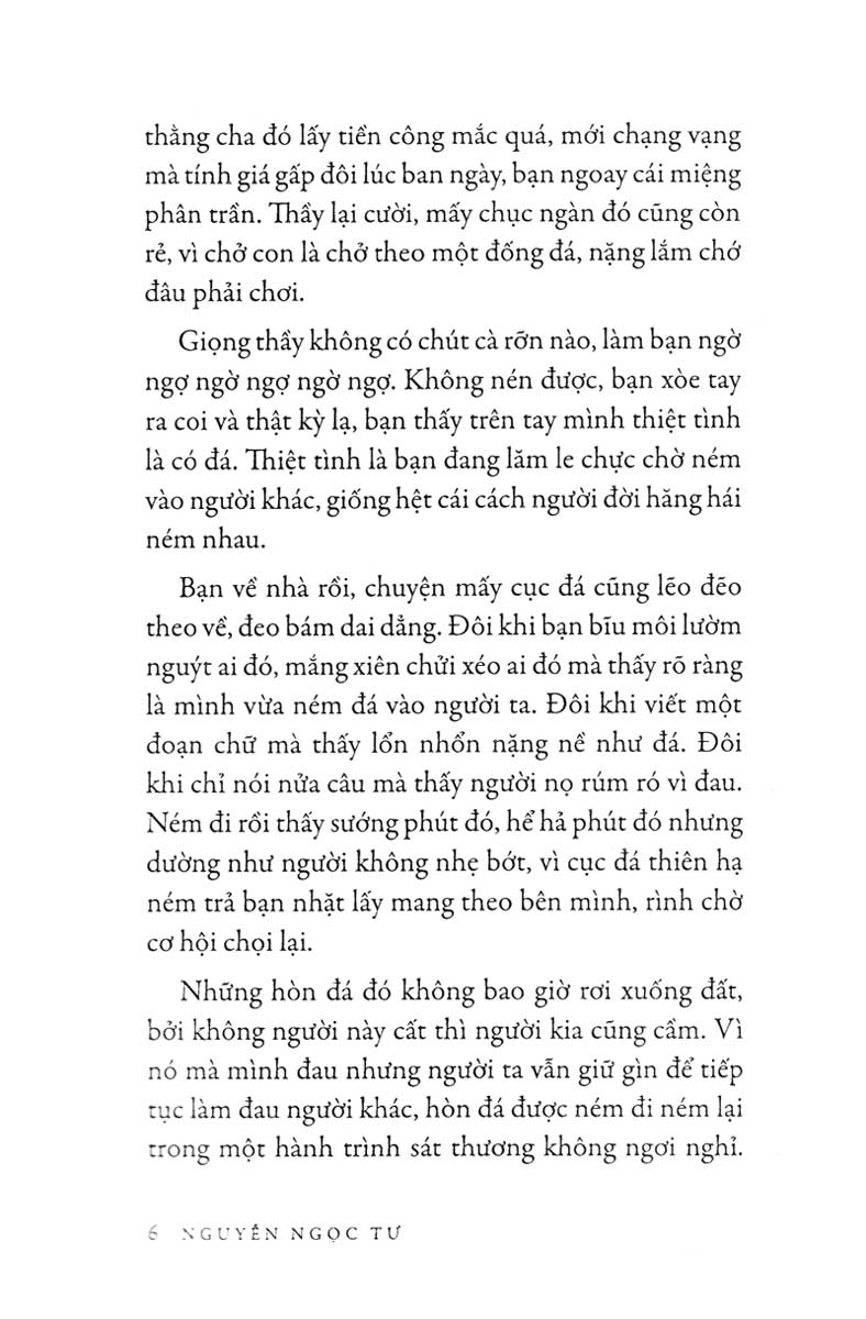 Quá khứ là kỷ niệm ấm áp, còn tương lai là những khát khao. Giữa hai miền thời gian đó, những chuyến dong ruổi, dù ngắn, qua ngóc ngách của làng quê hiện tại, đã giúp nhà văn viết nên những chi tiết hiện thực gây nhói buốt.