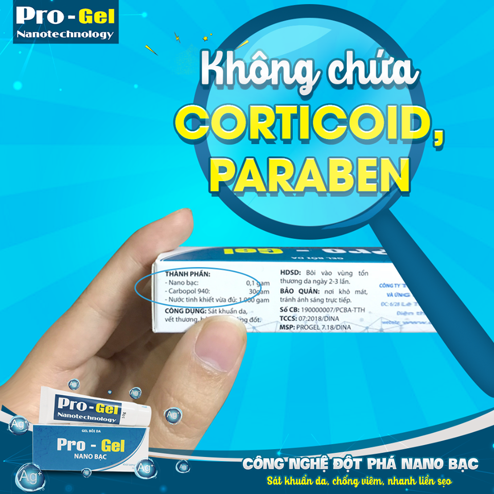Gel bôi da Pro Gel được sản xuất dựa trên ứng dụng từ công nghệ Nano bạc đột phá. Khi ở kích thước nano, hoạt tính kháng khuẩn của bạc tăng lên rất nhiều so với bạc dạng khối. Các hạt Nano Bạc tiêu diệt tất cả các chủng vi khuẩn, virus và nấm gây bệnh, kể cả các chủng chống lại kháng sinh.