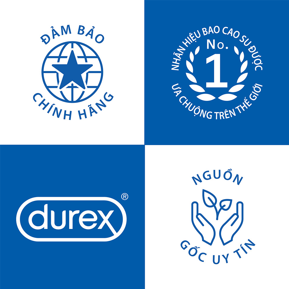 - Thông tin chi tiết được in trên bao bì sản phẩm. Thông tin thương hiệu Durex là thương hiệu bao cao su nổi tiếng thế giới với hơn 90 năm kinh nghiệm cùng những sản phẩm chất lượng cao, được tin dùng bởi hàng triệu người. Durex được ra đời năm 1915, là một trong các loại bao cao su hiện nay thuộc tập đoàn Reckitt Benckiser của Anh. Bao cao su Durex chiếm khoảng một phần tư thị phần toàn cầu về trang bị bảo vệ trong quan hệ tình dục và bán chạy thứ hai tại thị trường Mỹ. Mỗi năm có hơn một tỉ sản phẩm được sản xuất bởi 17 xí nghiệp trên toàn cầu. Durex đã trải qua những cột mốc đáng nhớ trong quá trình hình thành & phát triển hơn 80 năm qua. Cùng tìm hiểu những cột mốc quan trọng nhất đánh dấu sự tồn tại và phát triển của Durex.