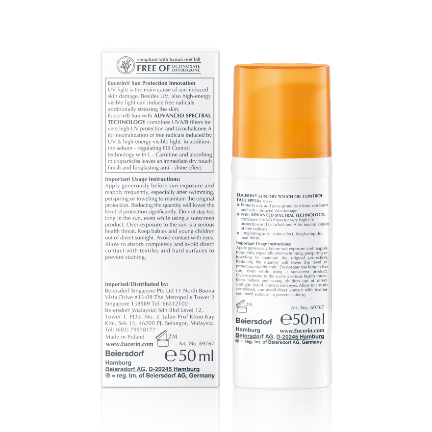 - Kem chống nắng kiềm dầu Eucerin Sun Cream SPF 50+ không có mùi thơm và có kết cấu siêu nhẹ, không nhờn rít. Các nghiên cứu lâm sàng và da liễu chứng minh thích hợp với làn da nhạy cảm và dễ bị mụn trứng cá. **Bao bì sản phẩm có thể khác nhau theo từng lô nhập hàng