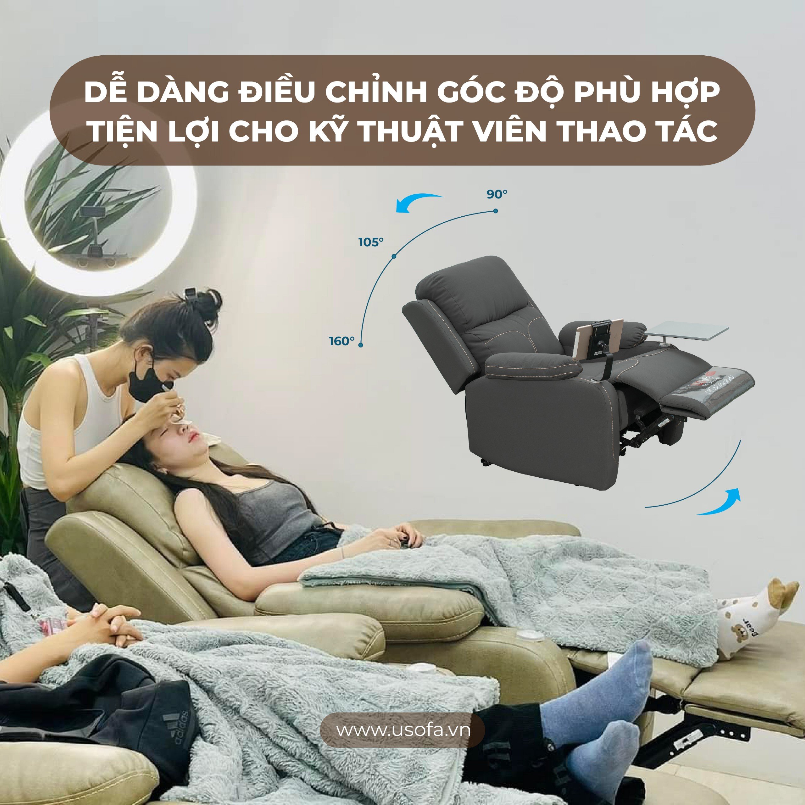 Ghế phải sử dụng chất liệu mềm êm, thoáng mát để khách hàng có thể nằm xuống và thư giãn trong thời gian dài.