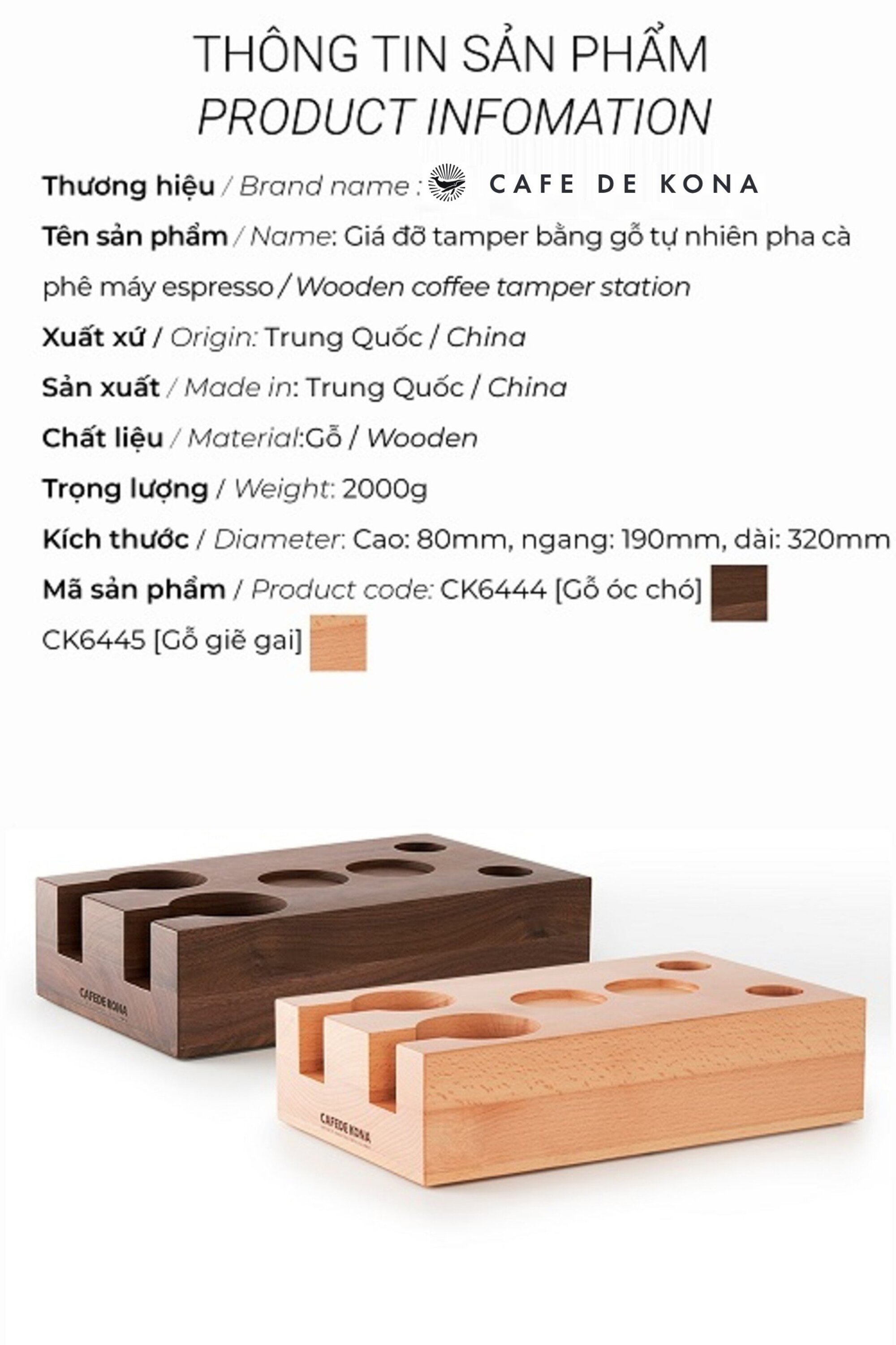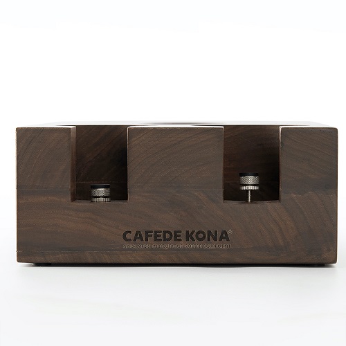 GIÁ ĐỠ TAMPER BẰNG GỖ TỰ NHIÊN PHA CÀ PHÊ MÁY ESPRESSO CAFE DE KONA Khối gỗ được làm bằng 2 loại gỗ: gỗ óc chó đen và gỗ giẻ gai châu âu.