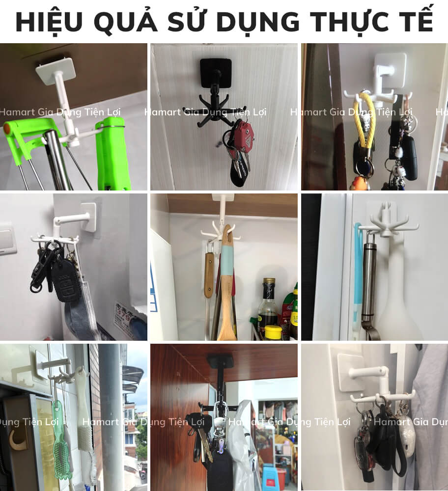 Móc treo 6 nhánh dán tường xoay 360 độ