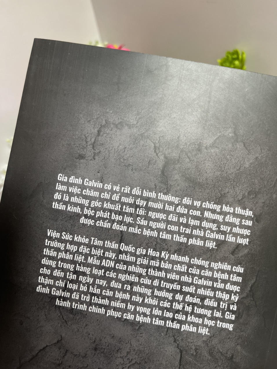 Giải mã tâm thần phân liệt thuật lại câu chuyện có thật về gia đình Galvin. Gia đình Galvin có vẻ rất đỗi bình thường: đôi vợ chồng hòa thuận, làm việc chăm chỉ để nuôi dạy mười hai đứa con. Nhưng đằng sau một gia đình có vẻ như rất đỗi bình thường ấy lại là những góc khuất vô cùng tăm tối: ng.ư.ợ đ.ã và l.ạ dụng, suy nhược thần kinh, bộc phát b.ạ l.ự Sáu người con trai của gia đình Galvin lần lượt được chẩn đoán mắc hội chứng t.â t.h.ầ phân liệt.