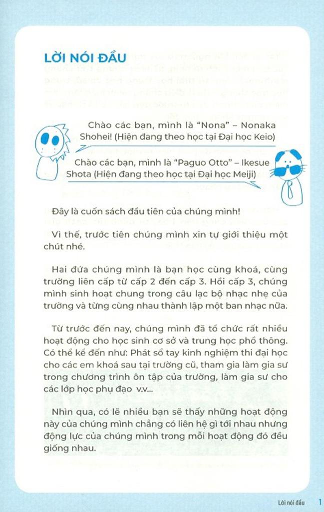 - Có lẽ… đã có người yêu!? Các bạn – những người bỏ thời gian đọc cuốn sách này đã làm một cuộc cách mạng nhỏ rồi đấy! Chúng mình sẽ luôn hỗ trợ đời sống học đường của các bạn trong mọi vấn đề, từ chuyện học hành (phương pháp học, trường học, học thêm) đến những chuyện trong cuộc sống thường ngày, chuyện tinh thần, chuyện tình yêu … IKESUE SHOTA (PAGUO OTTO) Sinh tháng 12 năm 1989, người Fukuoka. Theo học tại Đại học Meiji (Nhật Bản). NONAKA SHOHEI (NONA) Sinh tháng 6 năm 1989, người Tokyo. Theo học tại Đại học Keio Gijuku. Để giúp ích cho những bạn học sinh, hai tác giả chung tay mở blog với tên: “Trung tâm nghiên cứu những vấn đề nan giải lứa tuổi học sinh trung học cơ sở, trung học phổ thông.” Đến nay, trang blog có 3 vạn lượt xem mỗi tháng, được các bạn học sinh trung học chú ý và nhận được sự ủng hộ tích cực của các tổ chức giáo dục cũng như sự tin tưởng của phụ huynh Nhật Bản.