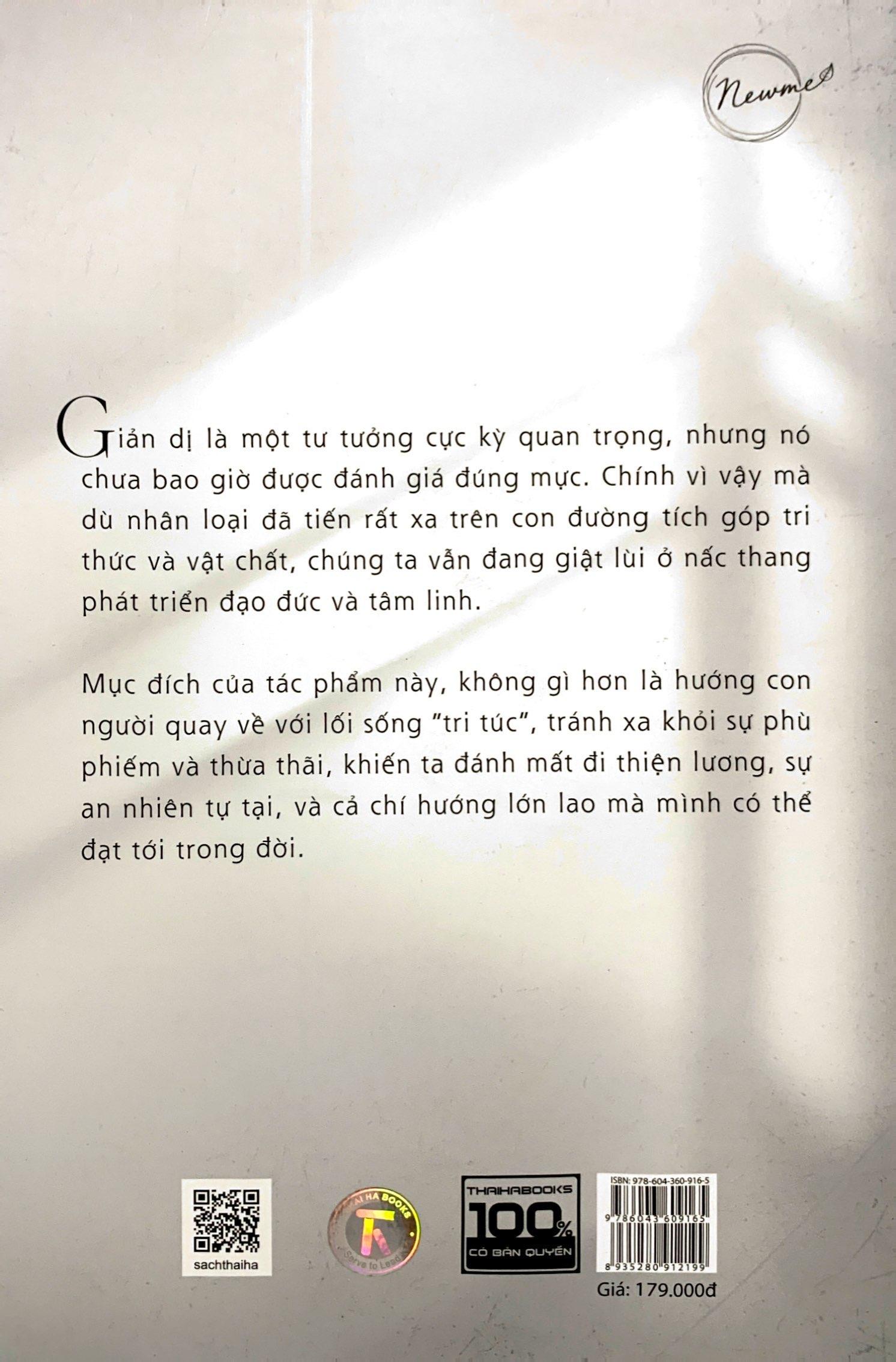 Trong cuốn sách Giản dị, tác giả Nguyễn Đỗ Thành Đạt đã đưa ra những suy nghiệm và tư tưởng về phương cách sống giản dị, một lối sống được nhiều người theo đuổi. Với mong muốn mang tới cho bạn đọc trước hết sự thay đổi trong tâm thức, để hiểu tại sao chúng ta cần sống một cuộc đời đơn giản hơn, nói cách khác, tại sao tư tưởng giản dị lại chính là chìa khóa giải quyết mọi vấn đề mà nhân loại đang phải đối mặt.
