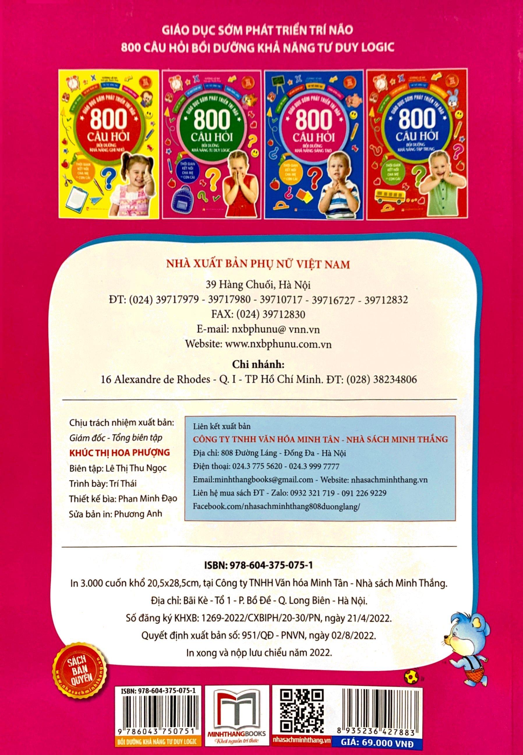 ✨Giáo Dục Sớm Phát Triển Trí Não - 800 Câu Đố - Bồi Dưỡng Khả Năng Tư Duy Logic (Tái Bản)