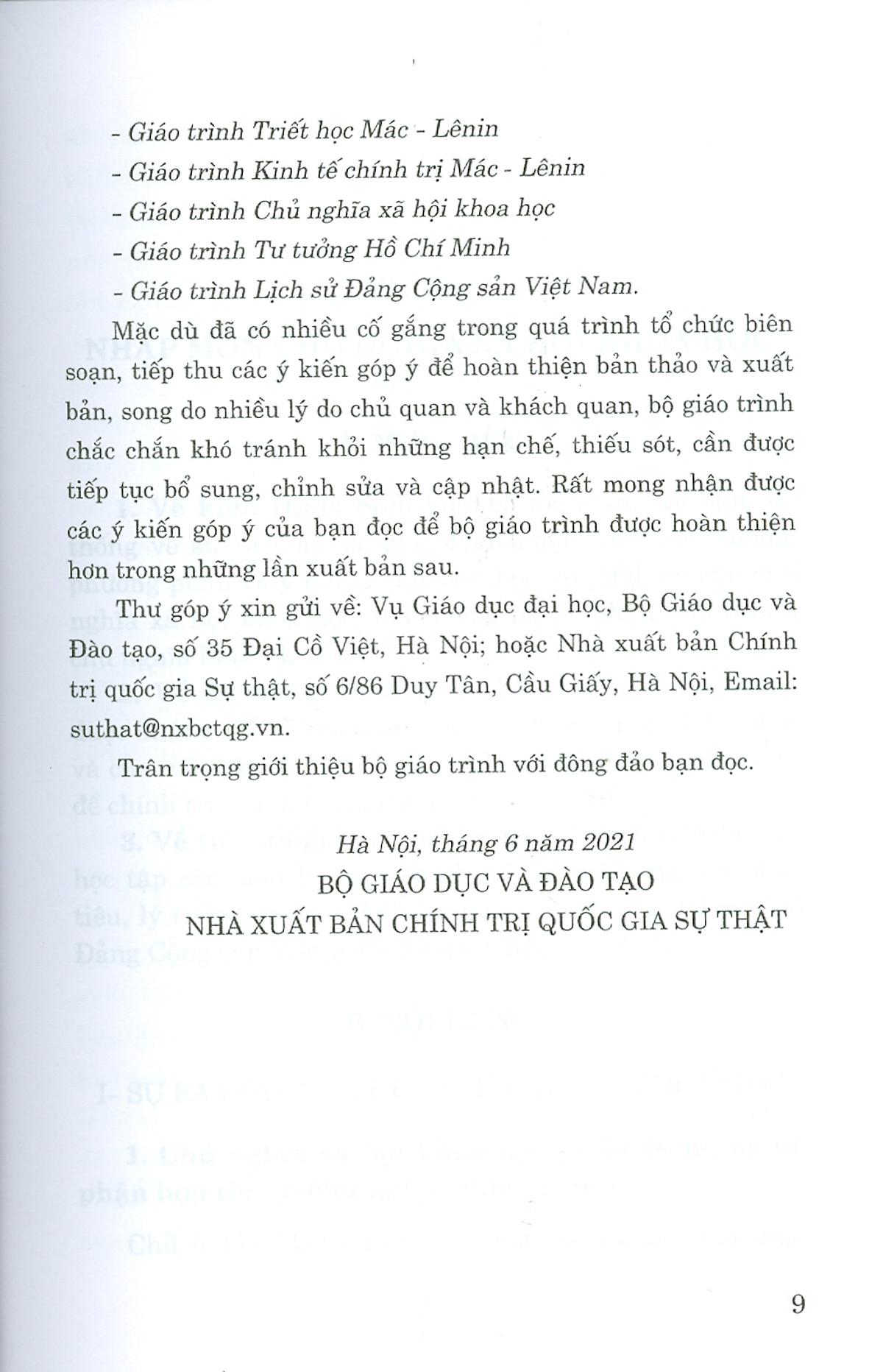 Bộ giáo trình lý luận chính trị gồm 5 cuốn dành cho bậc đại học hệ không chuyên lý luận chính trị. Bộ sách là tài liệu giảng dạy, học tập cho giảng viên, sinh