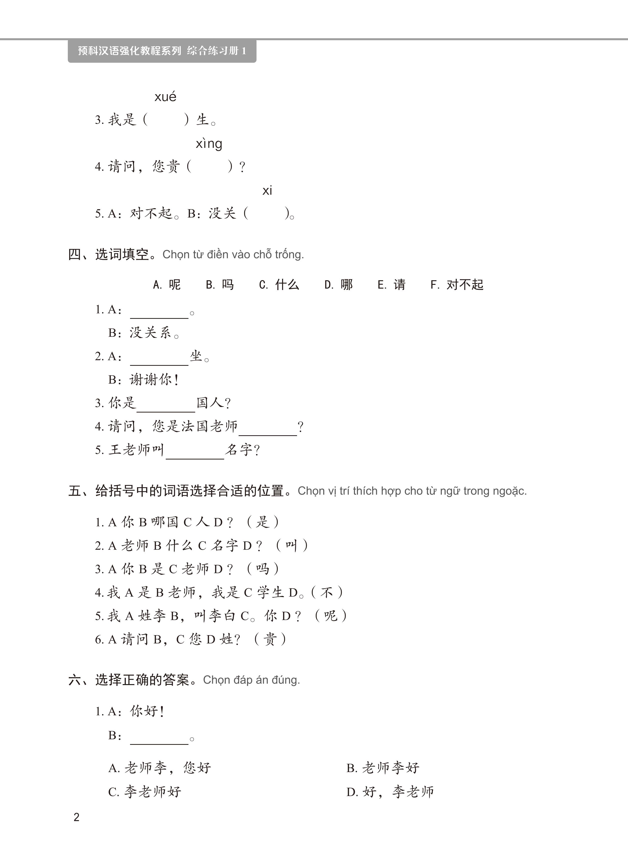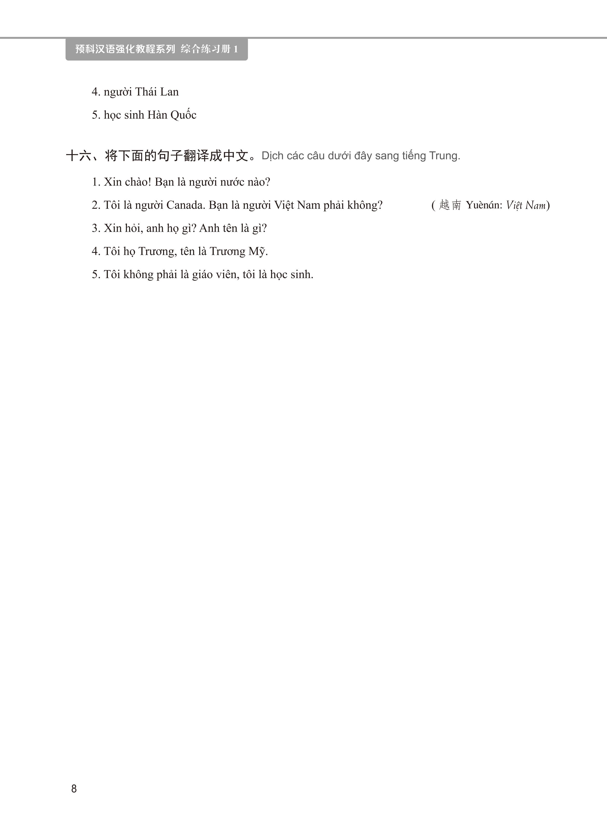 1.BÀI TẬP DỊCH TRUNG VIỆT-VIỆT TRUNG CỦNG CỐ CẤU TRÚC CỐ ĐỊNH & NGỮ PHÁP (Dựa theo ngữ pháp tiếng Hán Sơ trung cấp hiện đại" Loại bìa Bìa mềm Số trang 340 SKU