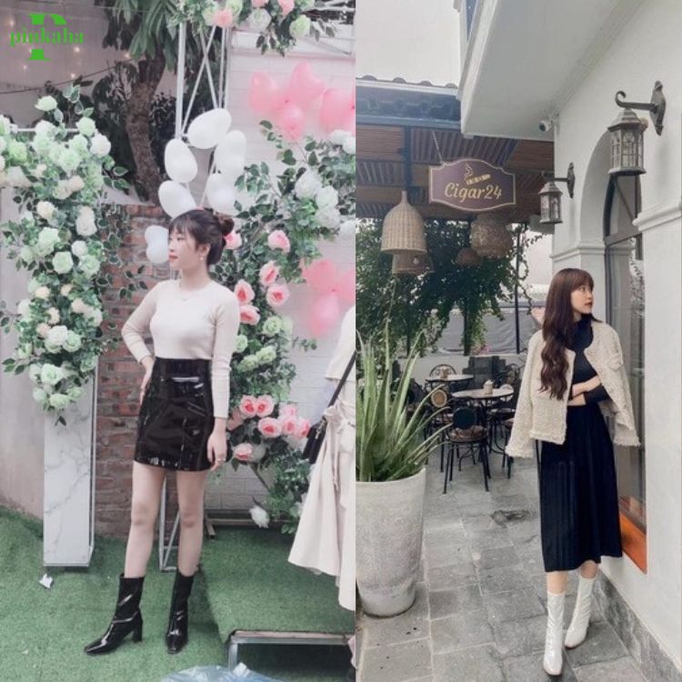 - E này dáng lửng tạo hiệu ứng chân dài, đã thế gót lại còn cao 8 phân, gót vuông dễ đi mà chắc chân