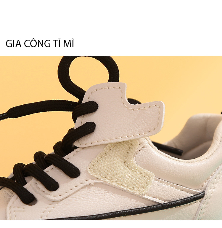 1.Thiết kế: có form giày dễ thương, năng động, hot Trend 2.Chất liệu: phần trên của đôi giày được làm từ chất liệu da cao cấp, mềm mại, giúp cho bé có có cảm giác