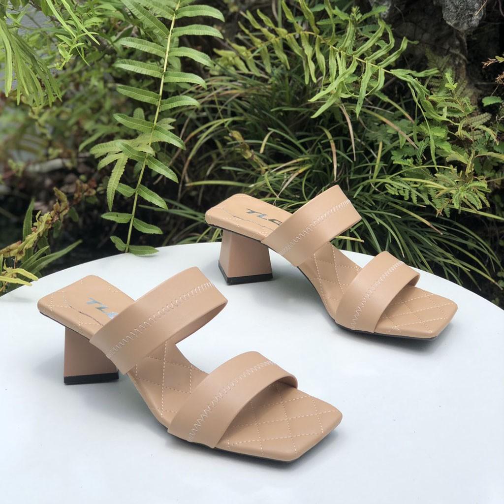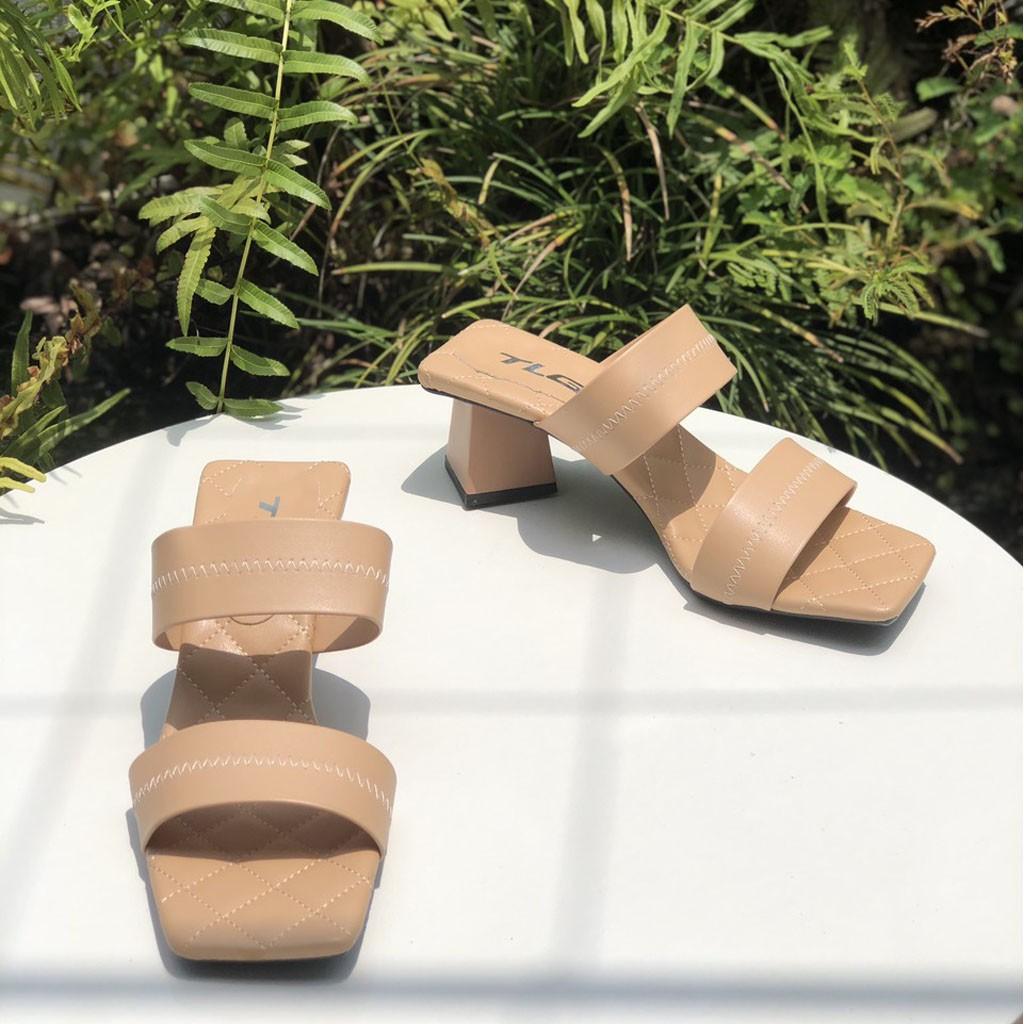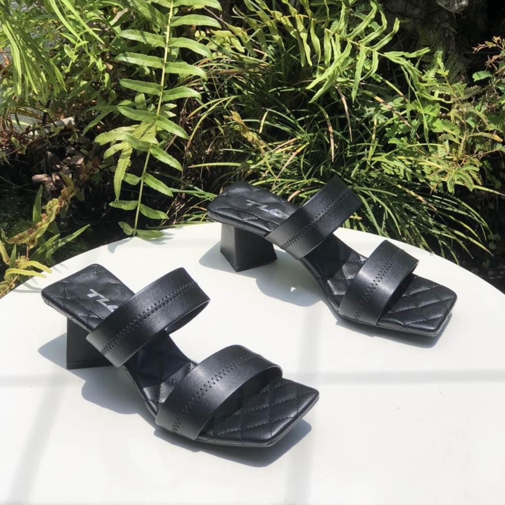 - Dép nữ cao gót quai ngang một bản TRường Hải màu đen gót vuông 8cm da mềm DN139 thiết kế với kiểu dáng ôm chân, thon gọn, thoải mái di chuyển mà không lo