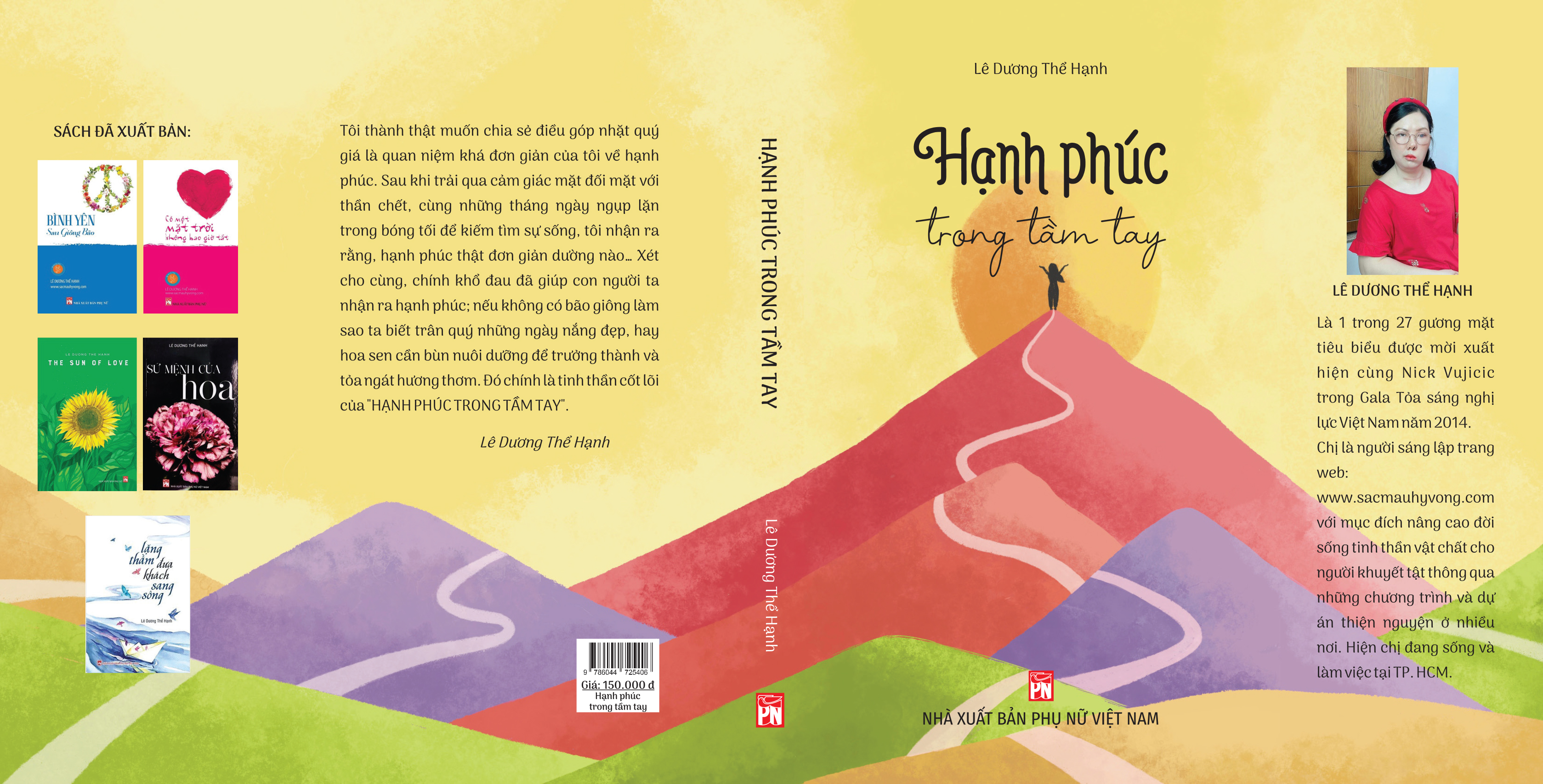 - THÔNG TIN CHUNG VỀ SÁCH "HẠNH PHÚC TRONG TẦM TAY" Nhà xuất bản Phụ nữ Việt Nam vừa phát hành tác phẩm "Hạnh phúc trong tầm tay" của tác giả Lê Dương Thể Hạnh vào tháng 10/2023 trên toàn quốc, nhân dịp Quốc tế Phụ nữ 20/10 - tháng tôn vinh nữ giới, đặc biệt những tác giả nữ. Có thể nói, "Hạnh phúc trong tầm tay" của Lê Dương Thể Hạnh ra mắt bạn đọc rất đúng thời điểm, vì đây là dịp cô có thể chia sẻ nhiều điều về hành trình tìm đến mặt trời của mình… Hạnh phúc trong tầm tay của tác giả Lê Dương Thể Hạnh thuộc dòng sách bổ trợ kỹ năng sống, là "rút ruột" chia sẻ từ tác giả về những đức tính quý báu mà con người cần có trong đời để cuộc sống trở nên chất lượng, trọn vẹn hơn. Là một tác giả khuyết tật, viết sách bằng phần mềm hỗ trợ giọng nói và nhờ sự giúp đỡ của cộng sự, Lê Dương Thể Hạnh cho thấy một nghị lực phi thường trong việc gieo những con chữ thiện lương, được trau chuốt cẩn thận để giúp vun bồi tâm hồn những bạn đọc "thuận duyên" đọc sách. Đồng hành cùng bóng tối hơn 15 năm, hơn ai hết, tác giả thấu hiểu việc "vượt tối" để tìm đến ánh sáng lương thiện trong "cõi người ta" này vô cùng gian nan. Và với những người thuộc nhóm "còn lại" như chính bản thân tác giả - khuyết tật đủ thứ, khả năng di chuyển và hoạt động hạn chế - hành trình "vượt tối" còn gian nan hơn gấp nhiều lần. Tuy vậy, chị không bỏ cuộc. Ở độ tuổi mà mọi người đã yên bề gia thất, con cái lớn khôn, tác giả Lê Dương Thể Hạnh, như bộc bạch của chị trong các trang sách, vẫn vui vẻ bên gia đình, cha mẹ, vẫn tận hưởng cuộc sống theo cách của riêng mình, và để biết rằng, ngày nào còn thở trên cuộc đời này thôi đã là may mắn lắm rồi. Nhưng những điều mà chị muốn độc giả hướng đến không dừng lại ở đó. Chị tâm sự: "Đến với Hạnh phúc trong tầm tay, có lẽ bạn sẽ tạm quên đi những nỗi đau ở quá khứ, và bạn cũng xa rời gánh nặng áo cơm để trở về với những giá trị - rất bình dị và rất chân thật từ trong sâu thẳm tâm hồn mình". Các chủ đề mà tác giả Lê Dương Thể Hạnh xoáy sâu vào gồm có bình yên, bao dung, khiêm tốn, yêu thương, lễ - nghĩa - trí - tín, tương trợ, tự do và hạnh phúc. Tuy xa mà gần, tuy gần mà xa, chị dẫn dắt độc giả qua từng chủ đề một cách dí dỏm, lối dẫn chuyện có duyên, văn phong khúc chiết để thấy được rằng, hạnh phúc không ở đâu xa mà nằm trong lòng bàn tay ta! Chị bộc bạch: "… Khi may mắn được sinh ra với cơ thể và trí não của một con người, có lẽ ta nên kích hoạt sóng não dành cho con người, vượt qua những nỗi sợ, mạnh dạn tiến về phía trước để đón nhận một tương lai tốt đẹp và thanh thản lưu lại những điều kỳ diệu cho cuộc đời. Và đây chính là tinh thần cốt lõi của "HẠNH PHÚC TRONG TẦM TAY"".