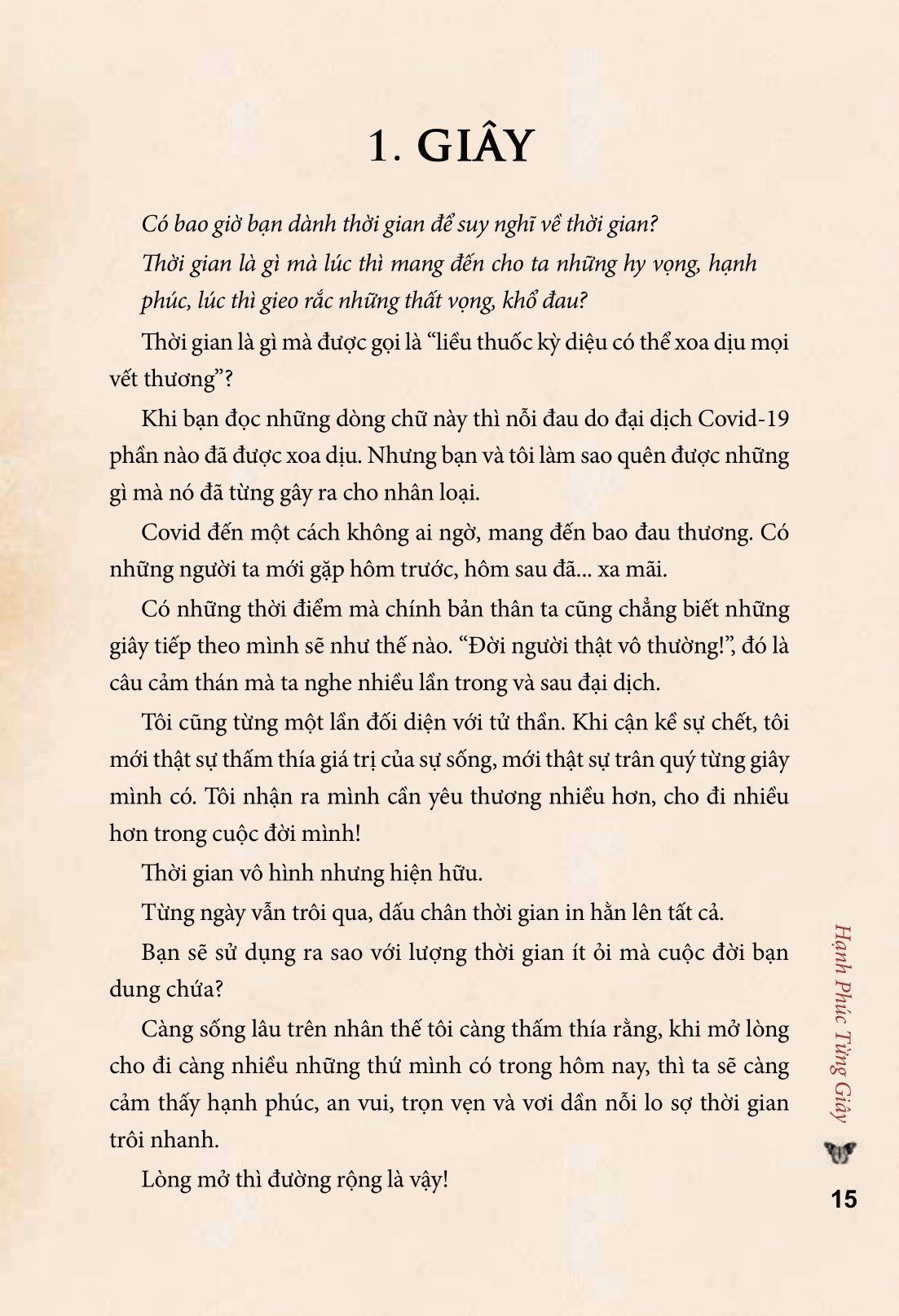 “Đời là bể khổ”, nhưng ta có quyền chọn để hạnh phúc mở lối. Chính vì lý do đó mà quyển sách nhỏ bé Hạnh phúc từng giây đã ra đời.