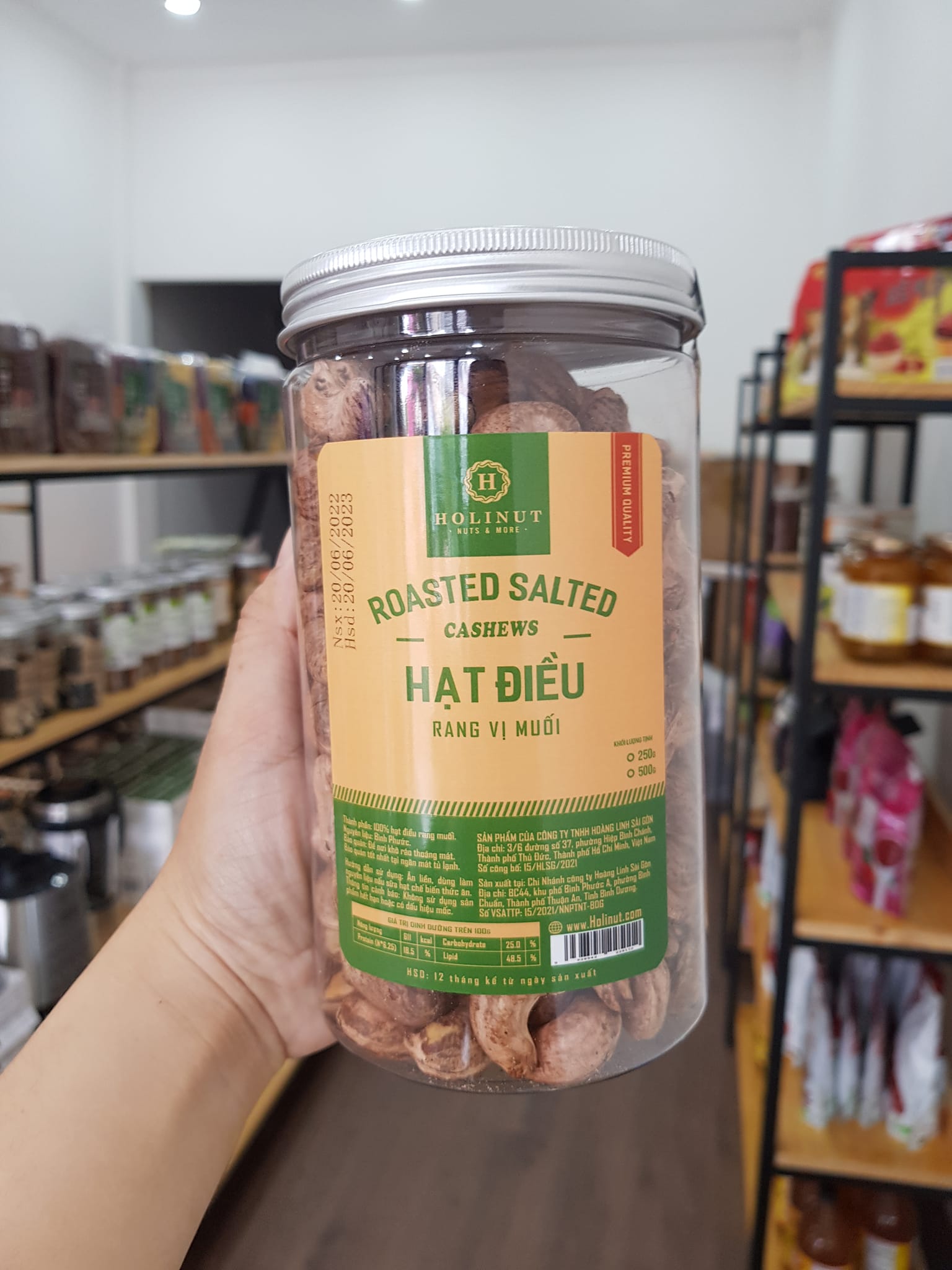 Thông tin hạt điều rang muối Bình Phước. - Thương hiệu: H Holinut Nuts & More - Phân phối bởi công ty TNHH HOÀNG LINH SÀI GÒN - Xuất xứ: Bình Phước (Việt Nam)